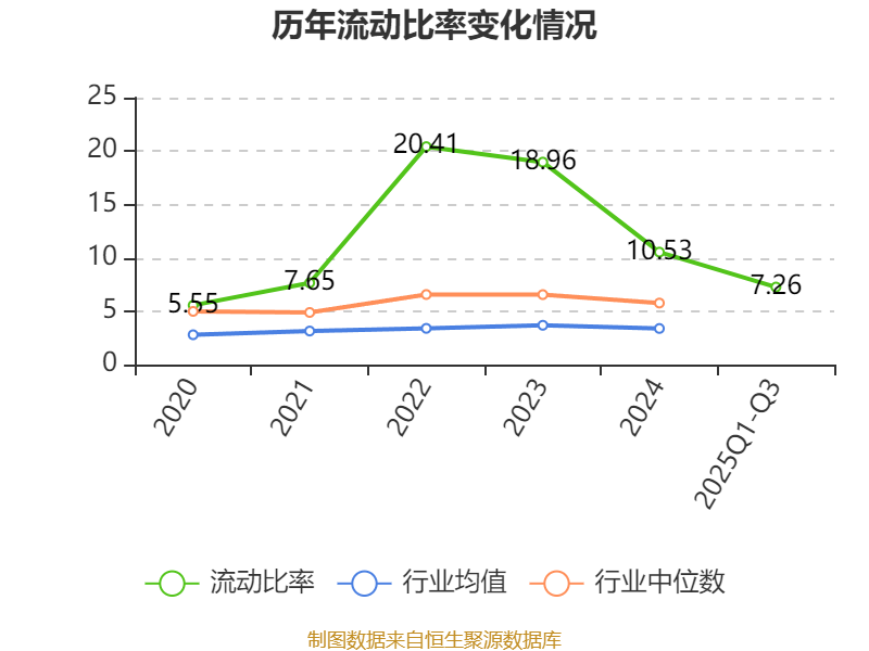 2025年前三季度,公司流动比率为7.26,速动比率为6.48。
