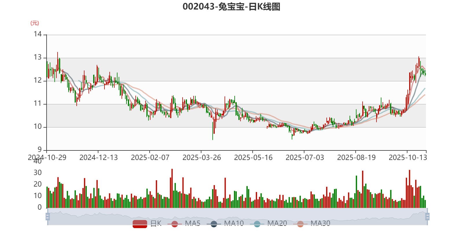 以10月28日收盘价计算,兔宝宝目前市盈率(TTM)约为13.92倍,市净率(LF)约3.17倍,市销率(TTM)约1.13倍。