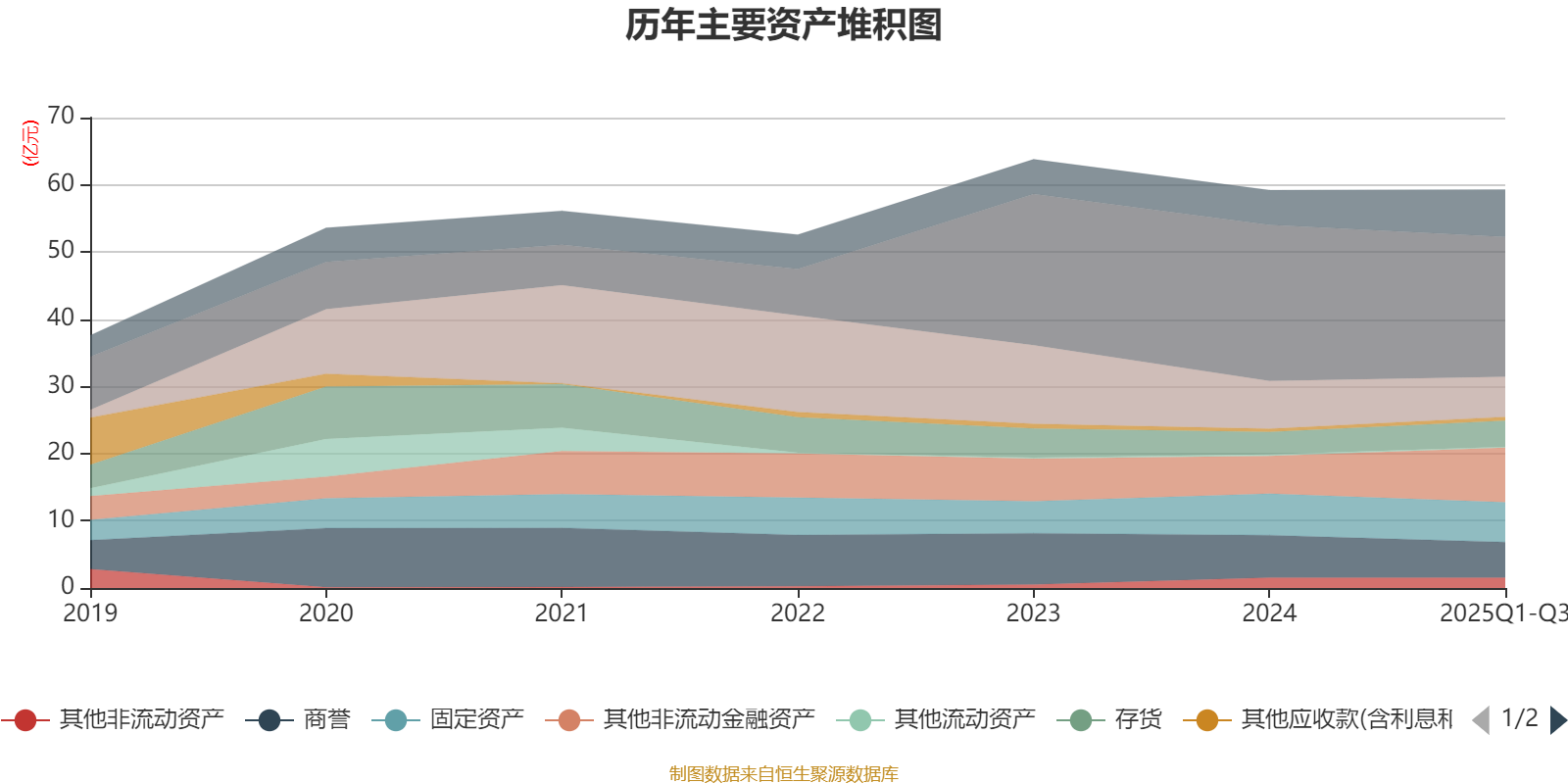 资产重大变化方面,截至2025年三季度末,公司其他非流动金融资产较上年末增加44.91%,占公司总资产比重上升4.24个百分点;货币资金较上年末减少10.33%,占公司总资产比重下降4.11个百分点;应收票据及应收账款较上年末减少16.41%,占公司总资产比重下降1.99个百分点;交易性金融资产合计占公司总资产的1.86%,上年末为0。