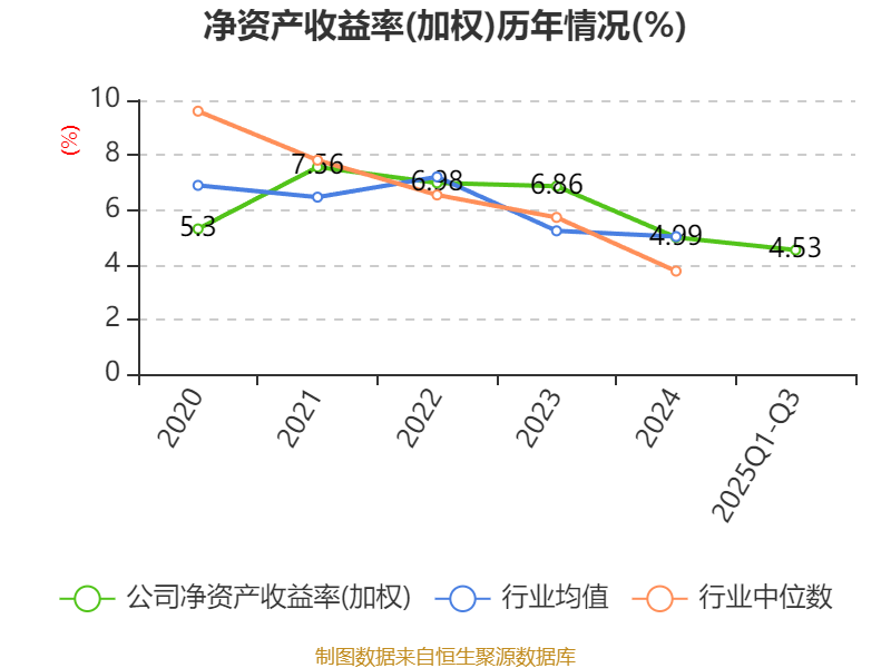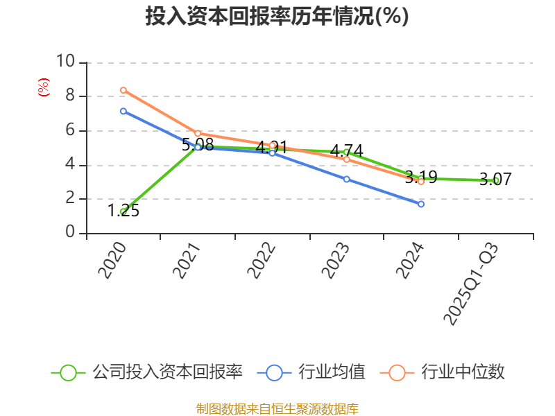 盈利能力方面, 2025年前三季度公司加权平均净资产收益率为4.53%,同比上升0.5个百分点。公司2025年前三季度投入资本回报率为3.07%,较上年同期上升0.58个百分点。