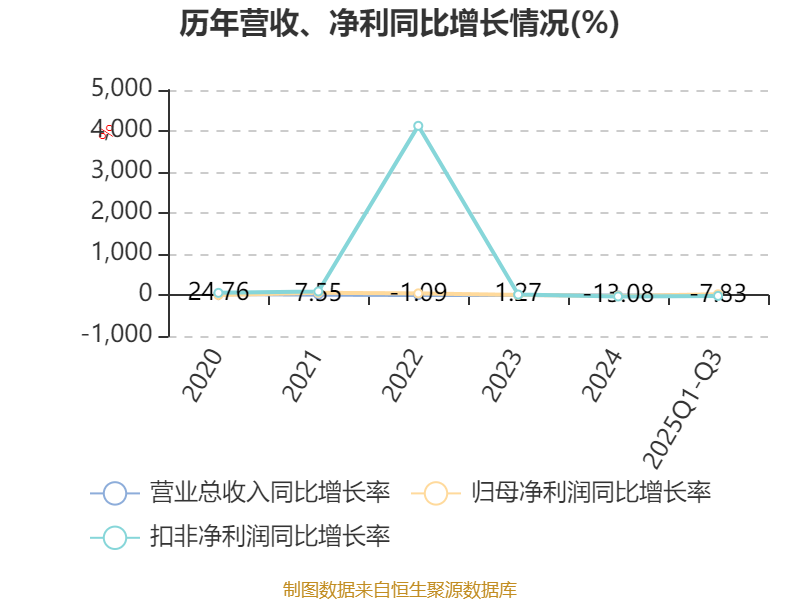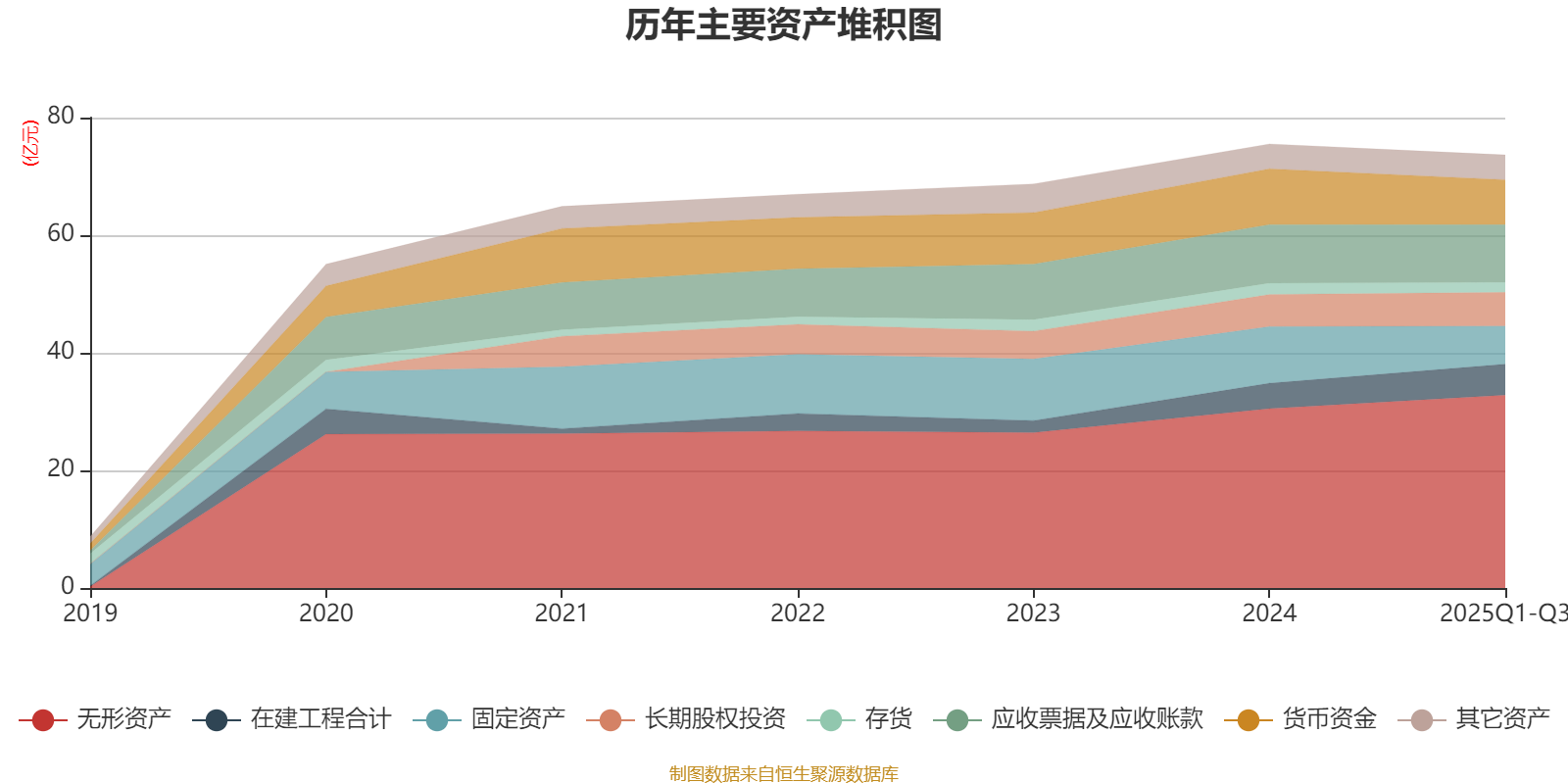 资产重大变化方面,截至2025年三季度末,公司无形资产较上年末增加7.54%,占公司总资产比重上升4.14个百分点;固定资产较上年末减少32.65%,占公司总资产比重下降3.95个百分点;货币资金较上年末减少19.33%,占公司总资产比重下降2.17个百分点;在建工程合计较上年末增加22.03%,占公司总资产比重上升1.43个百分点。