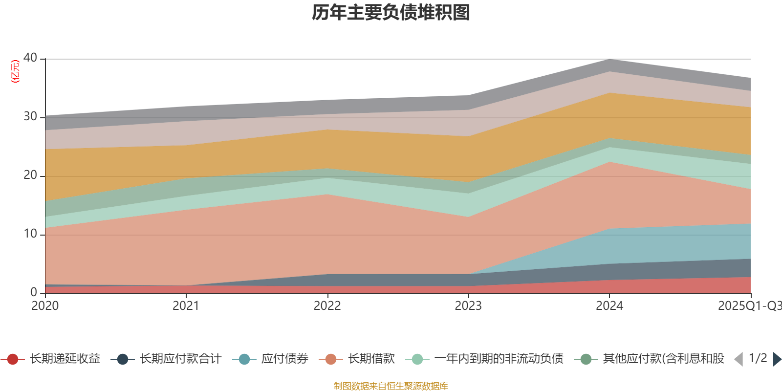 负债重大变化方面,截至2025年三季度末,公司长期借款较上年末减少48.32%,占公司总资产比重下降7.1个百分点;一年内到期的非流动负债较上年末增加71.95%,占公司总资产比重上升2.51个百分点;短期借款较上年末减少22.43%,占公司总资产比重下降0.98个百分点;应付票据及应付账款较上年末增加5.05%,占公司总资产比重上升0.79个百分点。