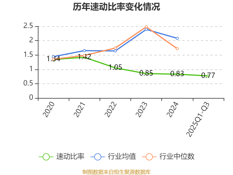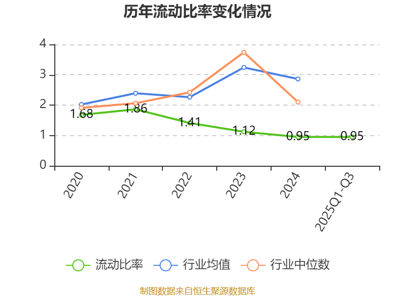 2025年前三季度,公司流动比率为0.95,速动比率为0.77。