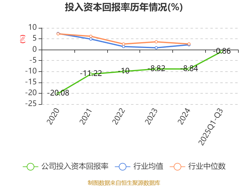 盈利能力方面, 2025年前三季度公司加权平均净资产收益率为-2.59%,同比上升4.31个百分点。公司2025年前三季度投入资本回报率为-0.86%,较上年同期上升3.92个百分点。