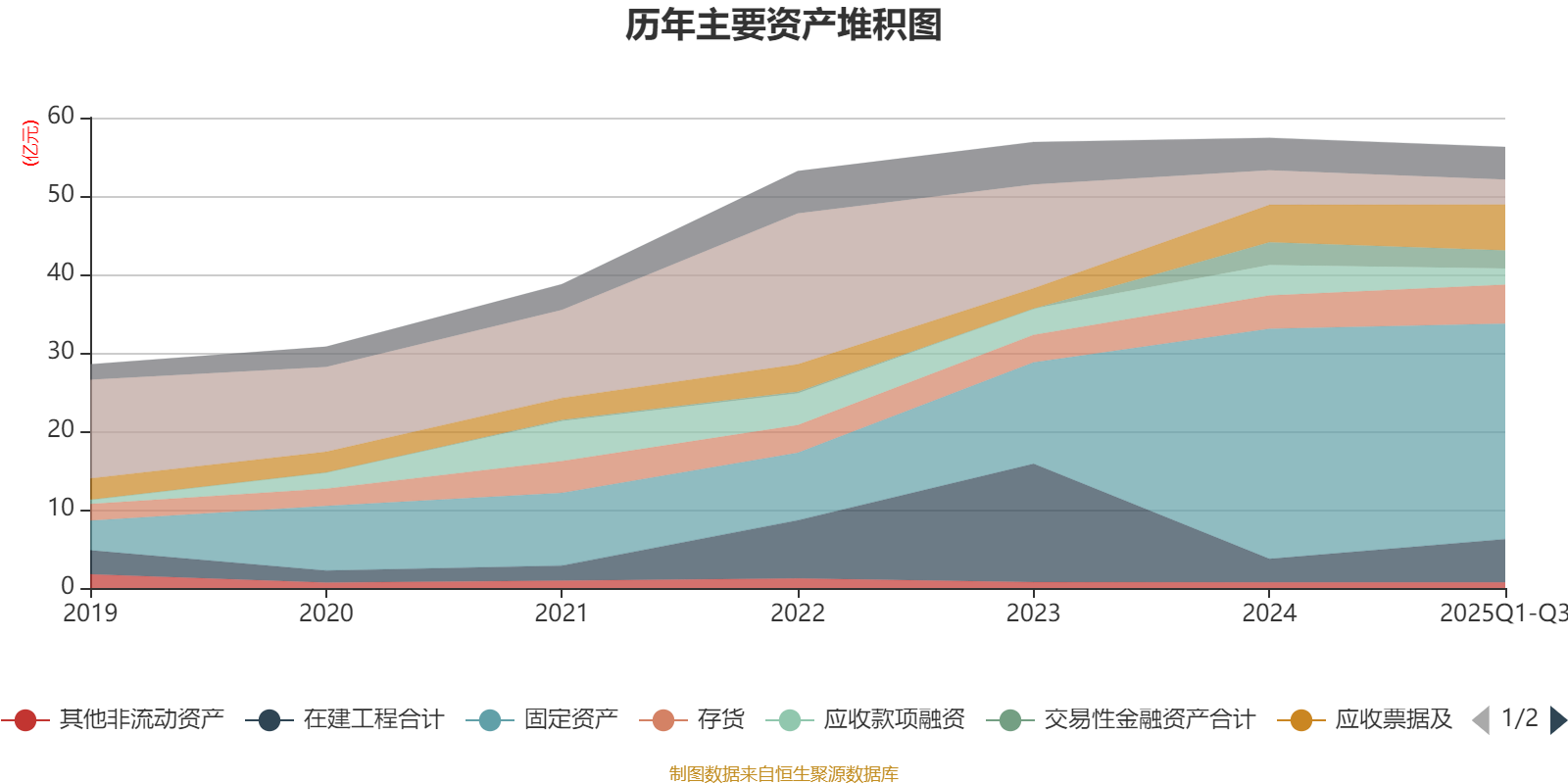 资产重大变化方面,截至2025年三季度末,公司在建工程合计较上年末增加84.18%,占公司总资产比重上升4.59个百分点;应收款项融资较上年末减少46.9%,占公司总资产比重下降3.1个百分点;固定资产较上年末减少6.34%,占公司总资产比重下降2.26个百分点;应收票据及应收账款较上年末增加23.27%,占公司总资产比重上升2.14个百分点。