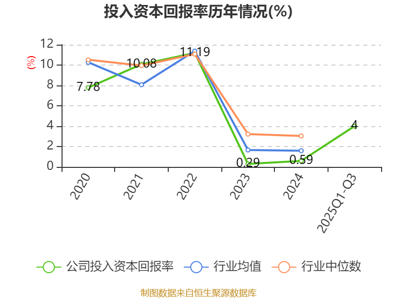 盈利能力方面, 2025年前三季度公司加权平均净资产收益率为5.45%,同比上升5.1个百分点。公司2025年前三季度投入资本回报率为4%,较上年同期上升3.53个百分点。