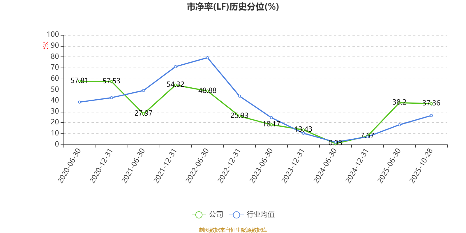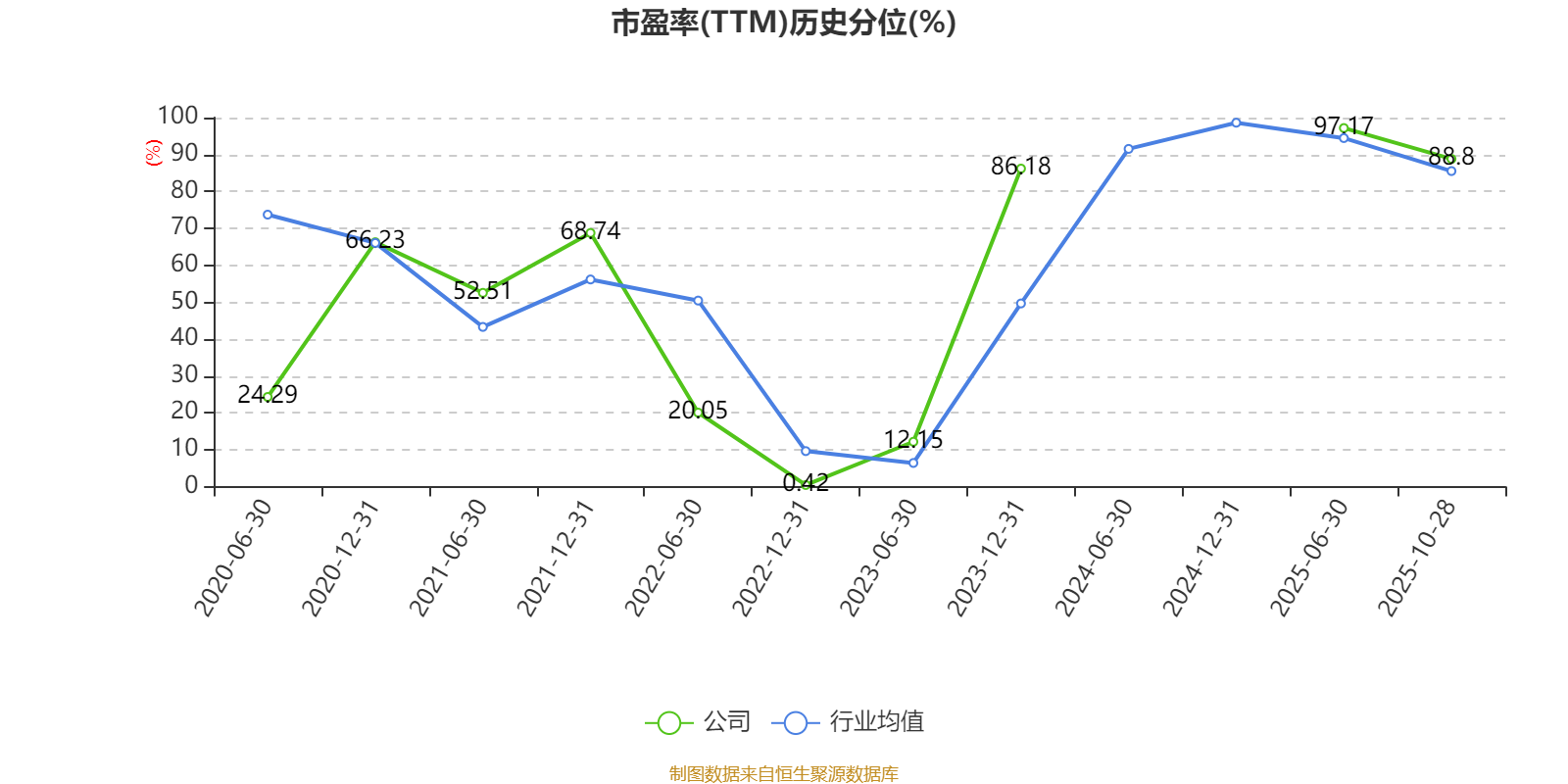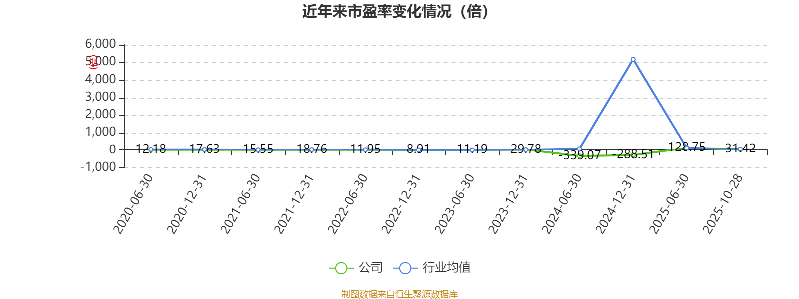 市盈率、市净率为负时,不显示当期分位数,会导致折线图中断。