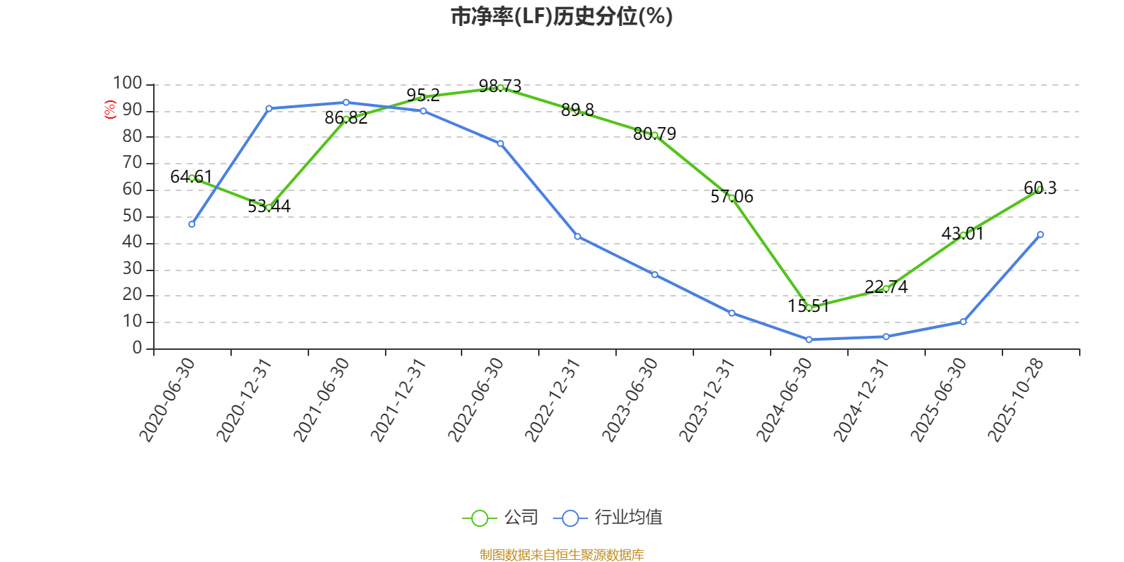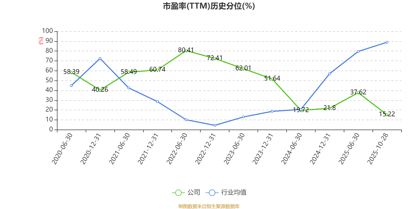 市盈率、市净率为负时,不显示当期分位数,会导致折线图中断。