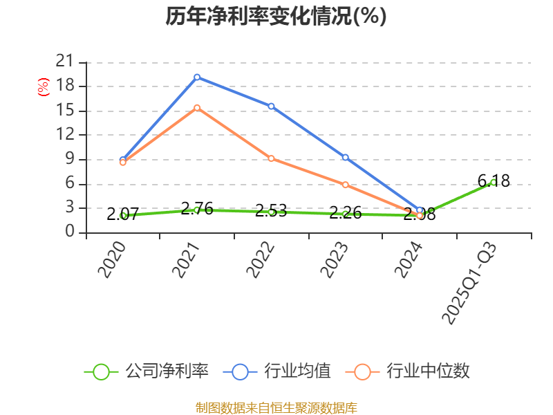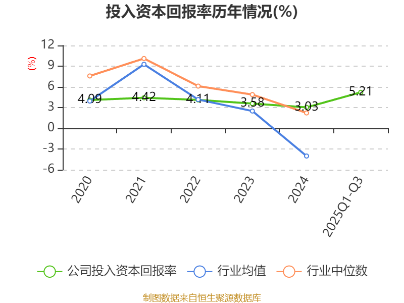 盈利能力方面, 2025年前三季度公司加权平均净资产收益率为6.65%,同比上升4.18个百分点。公司2025年前三季度投入资本回报率为5.21%,较上年同期上升2.83个百分点。