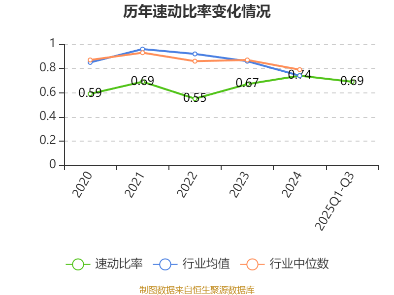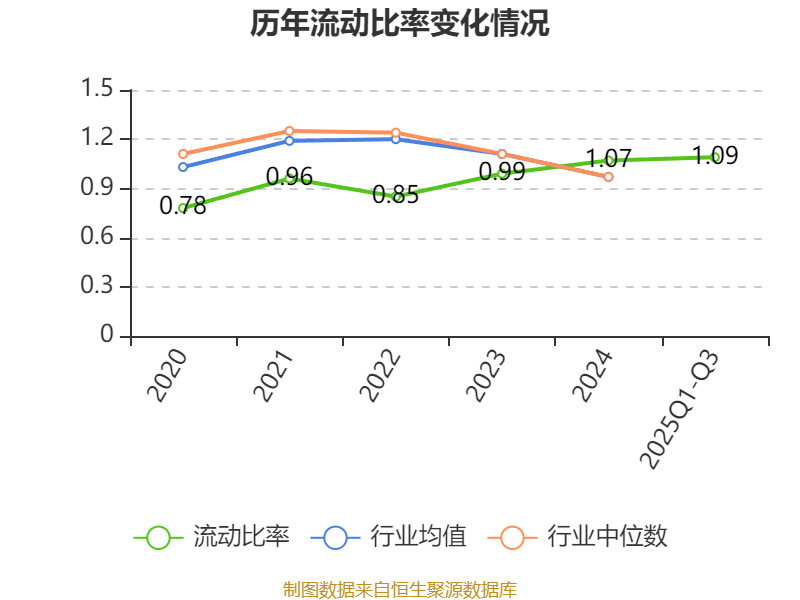 2025年前三季度,公司流动比率为1.09,速动比率为0.69。