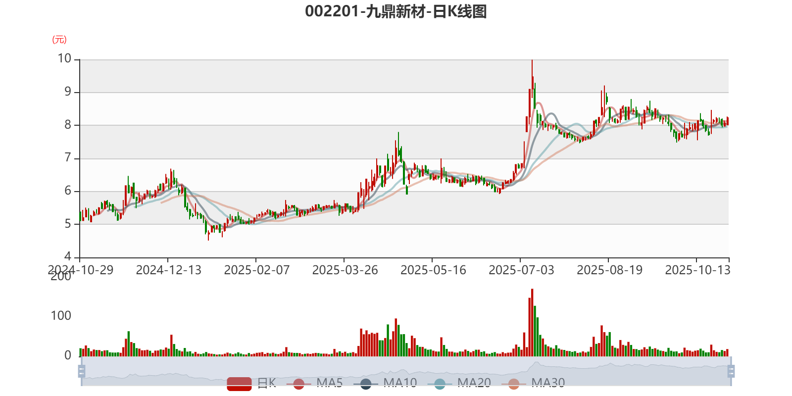 以10月28日收盘价计算,九鼎新材目前市盈率(TTM)约为68.66倍,市净率(LF)约4.61倍,市销率(TTM)约3.07倍。