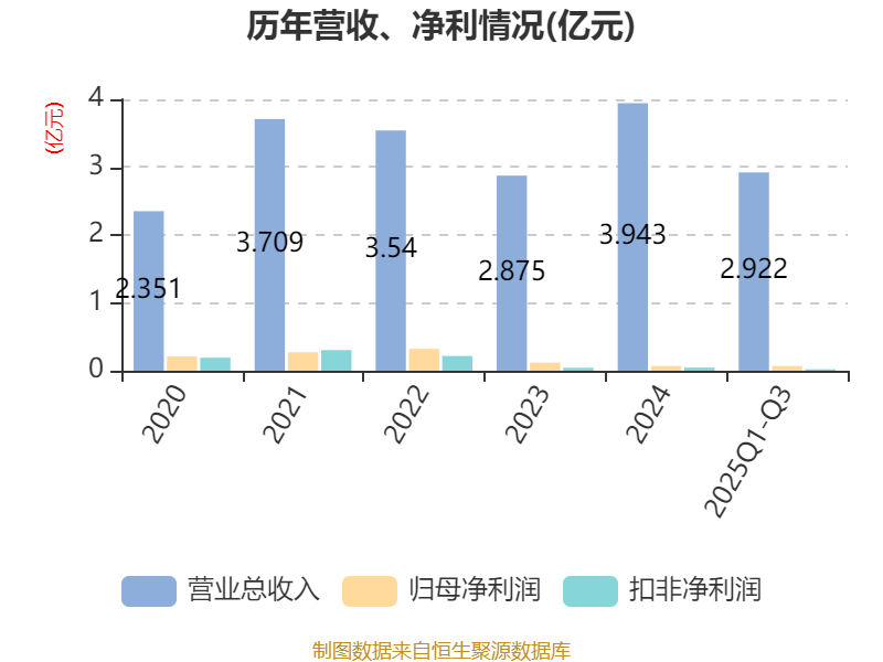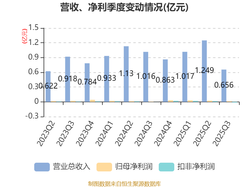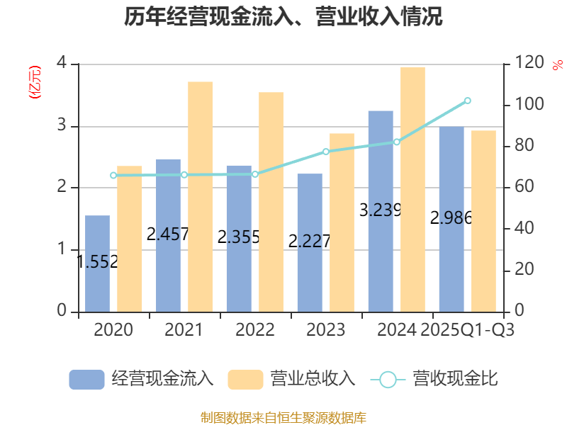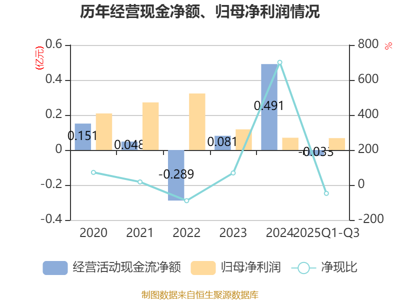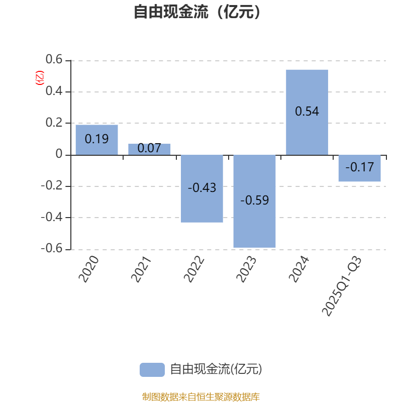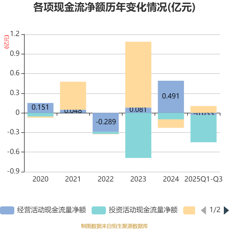 2025年前三季度,公司经营活动现金流净额为-326.14万元,同比减少2698.05万元;筹资活动现金流净额1049.72万元,同比增加2272.82万元;投资活动现金流净额-4160.51万元,上年同期为1616.62万元。