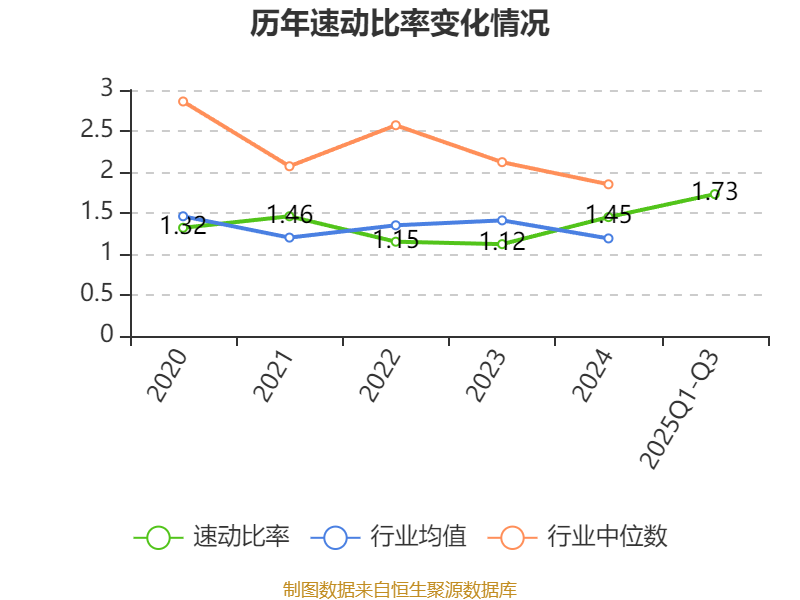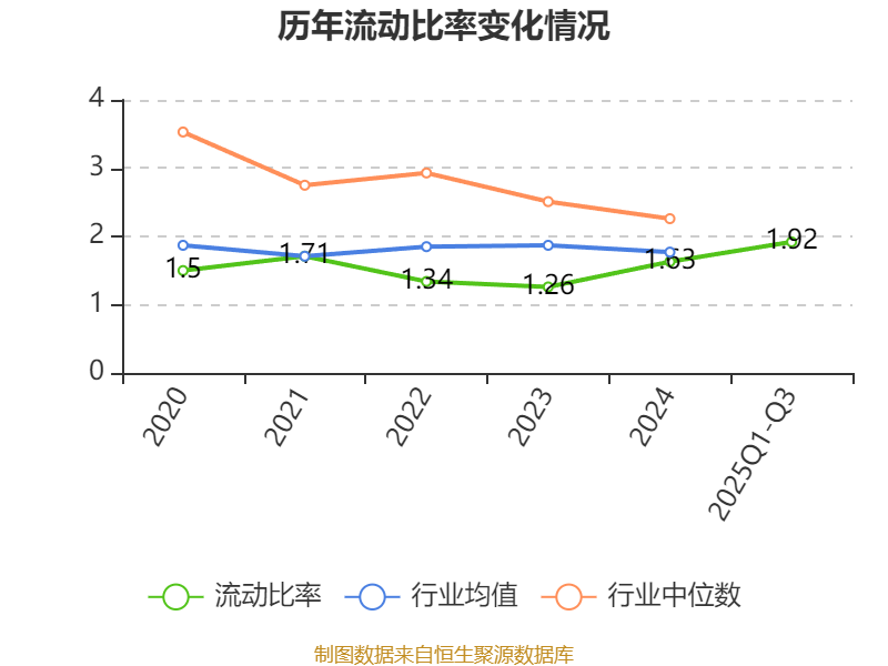 2025年前三季度,公司流动比率为1.92,速动比率为1.73。