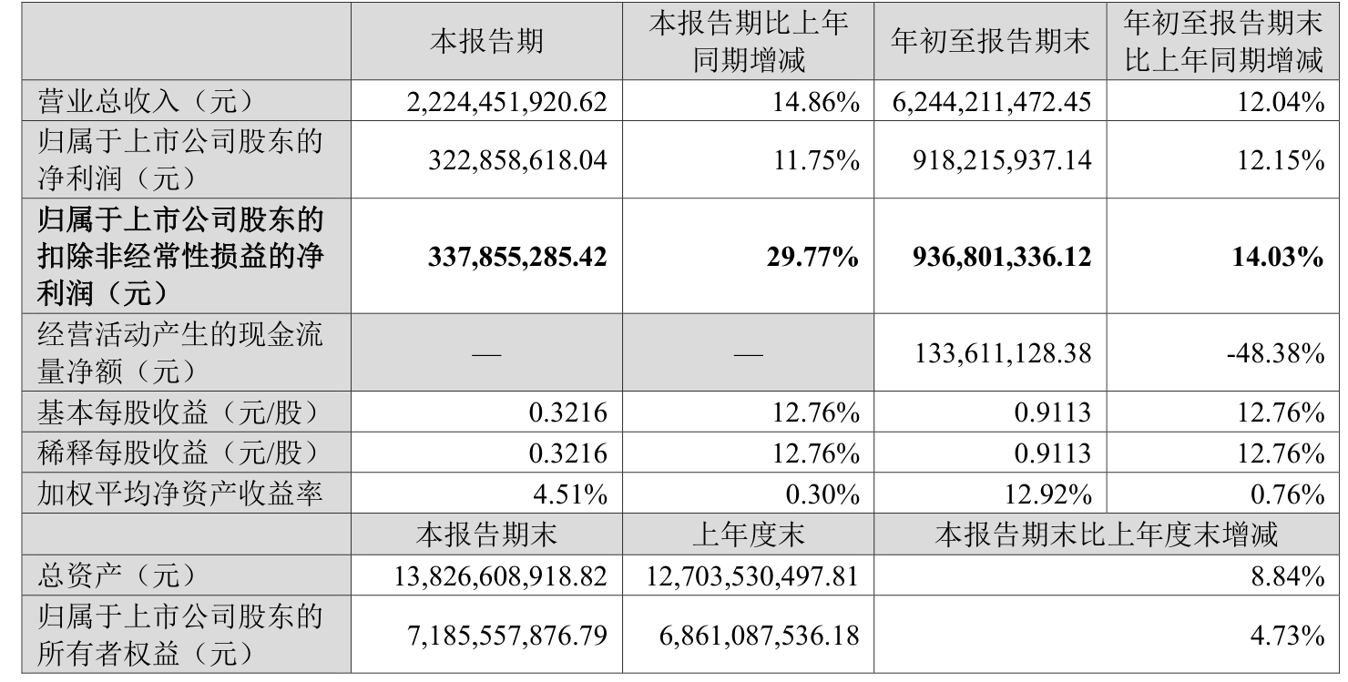 盈利能力方面, 2025年前三季度公司加权平均净资产收益率为12.92%,同比上升0.76个百分点。公司2025年前三季度投入资本回报率为11.36%,较上年同期上升1.3个百分点。