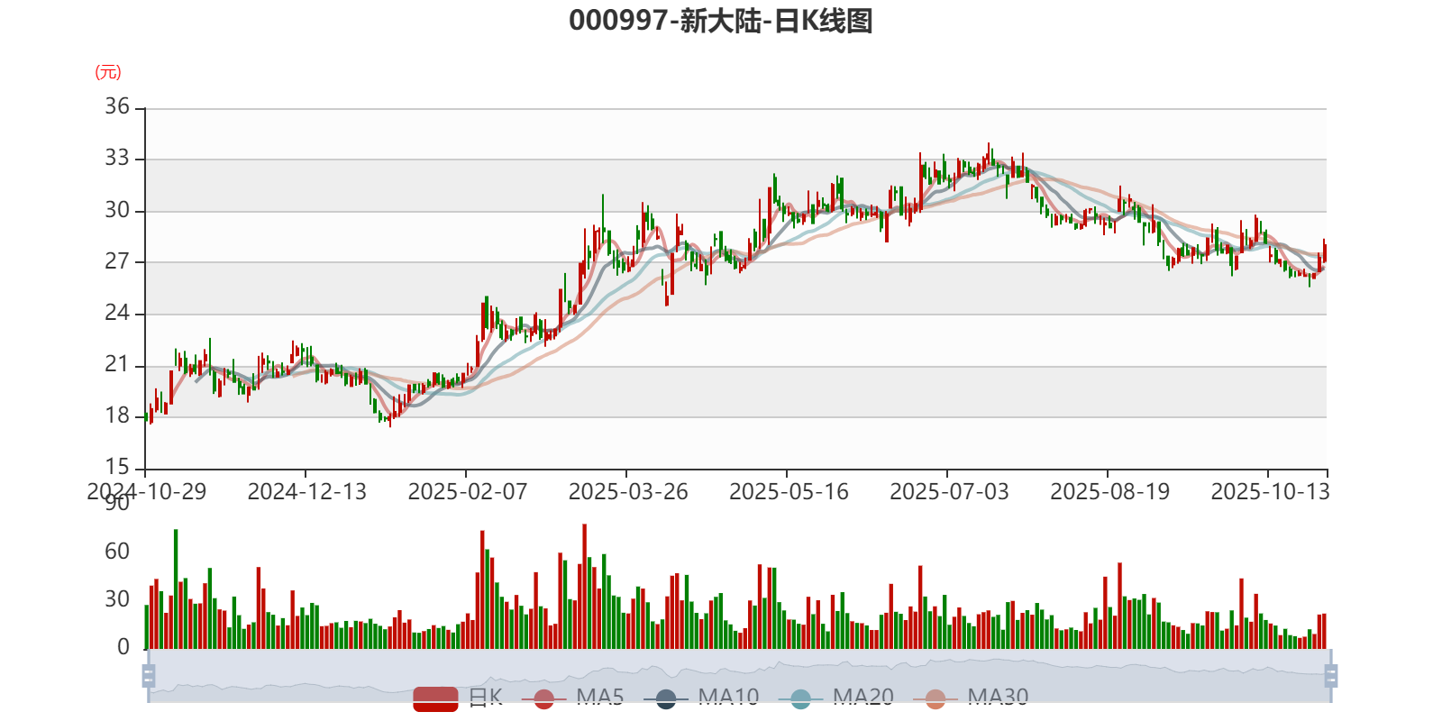 以10月28日收盘价计算,新大陆目前市盈率(TTM)约为25.6倍,市净率(LF)约3.95倍,市销率(TTM)约3.52倍。
