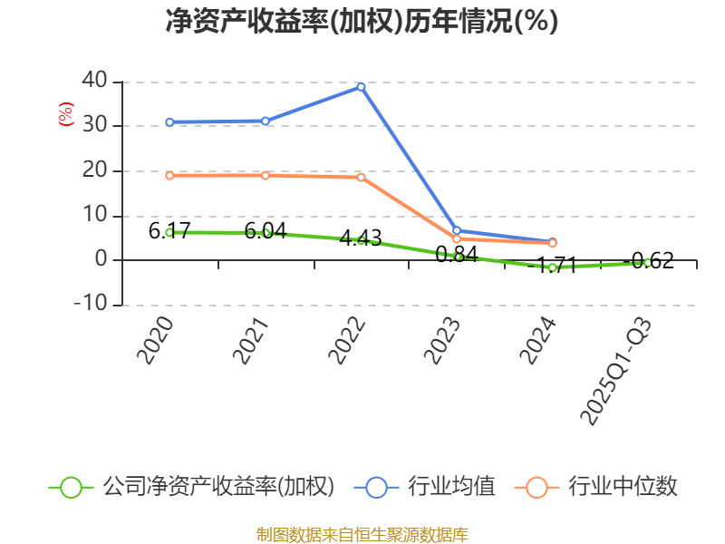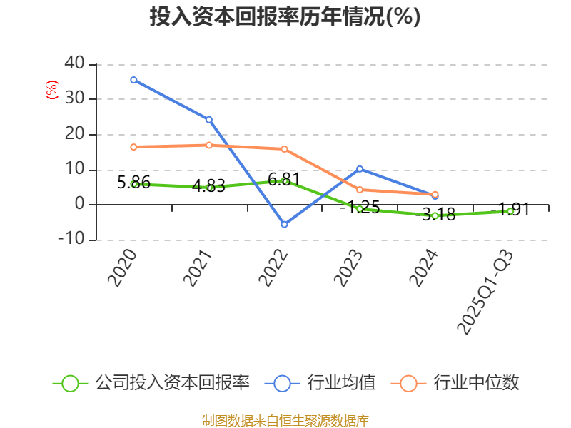 盈利能力方面, 2025年前三季度公司加权平均净资产收益率为-0.62%,同比下降1.23个百分点。公司2025年前三季度投入资本回报率为-1.91%,较上年同期下降1.46个百分点。