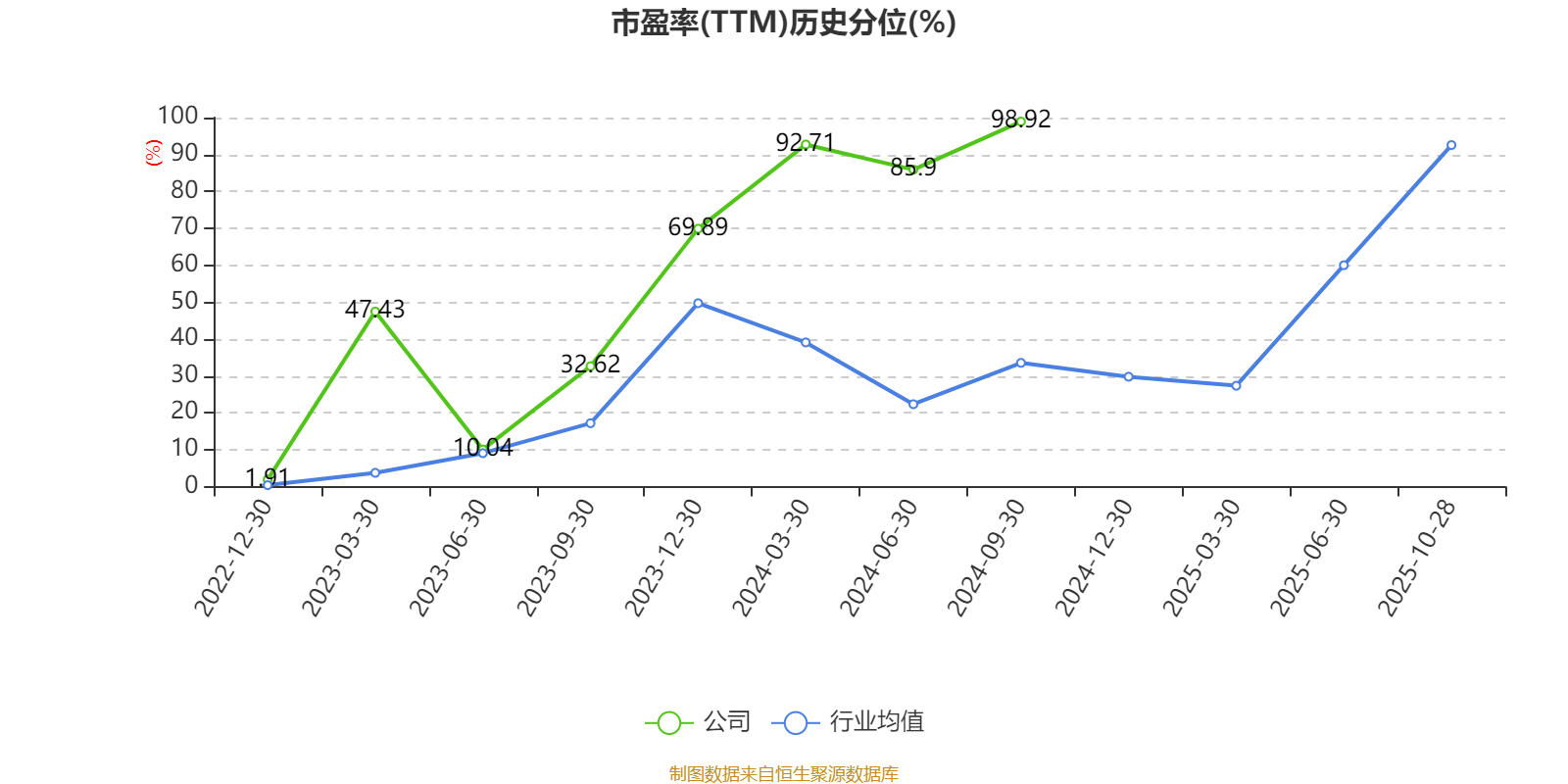 市盈率、市净率为负时,不显示当期分位数,会导致折线图中断。