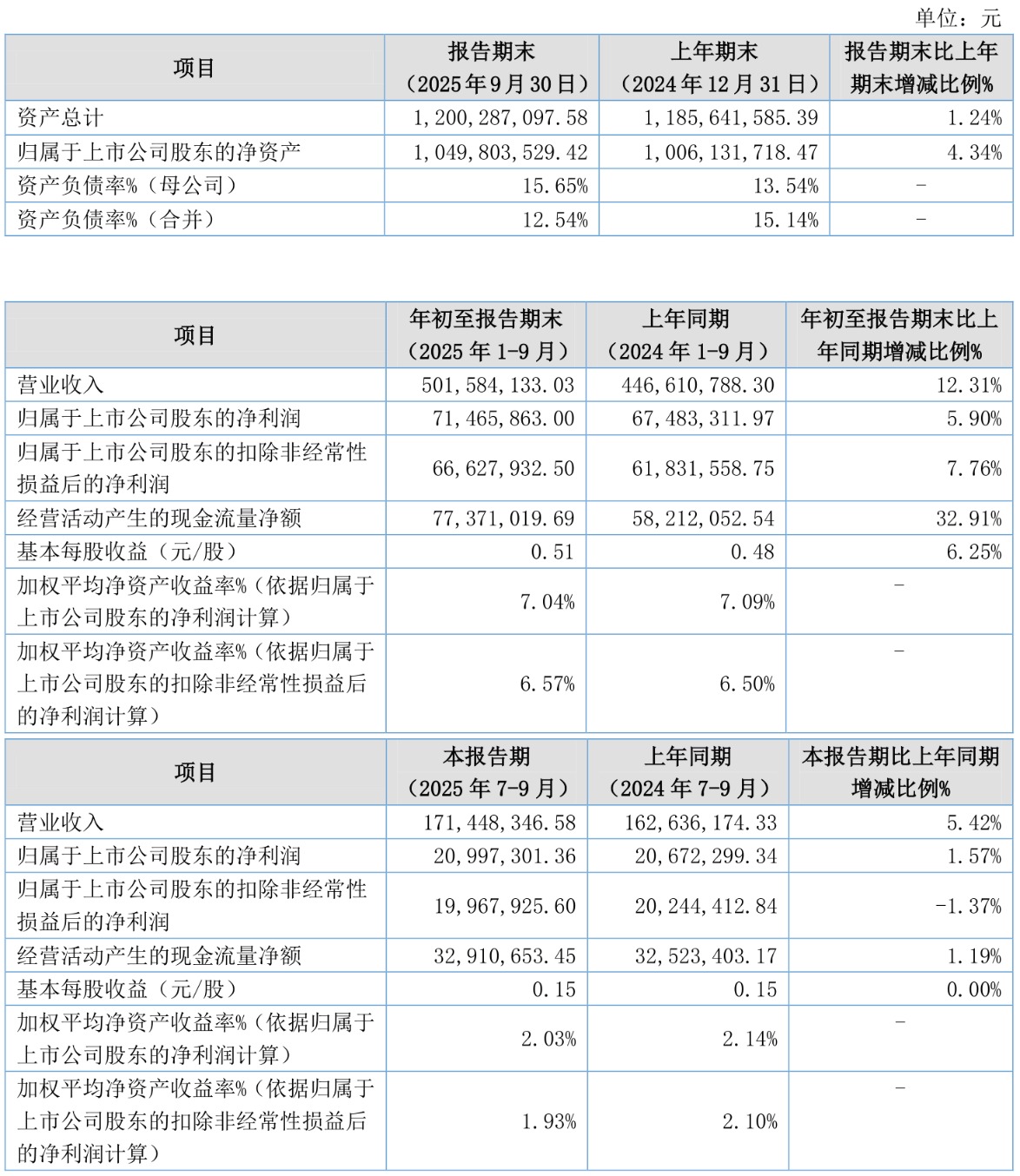 负债重大变化方面,截至2025年三季度末,公司其他应付款(含利息和股利)较上年末减少41.58%,占公司总资产比重下降1.14个百分点;应付票据及应付账款较上年末减少15.95%,占公司总资产比重下降0.94个百分点;应付职工薪酬较上年末减少13.21%,占公司总资产比重下降0.38个百分点;其他流动负债较上年末增加170.03%,占公司总资产比重上升0.13个百分点。