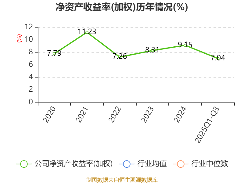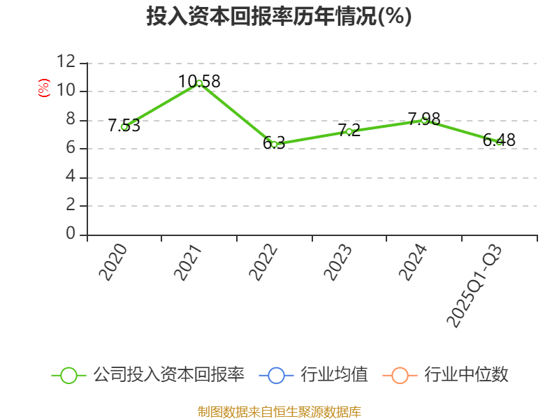 盈利能力方面, 2025年前三季度公司加权平均净资产收益率为7.04%,同比下降0.05个百分点。公司2025年前三季度投入资本回报率为6.48%,较上年同期上升0.36个百分点。