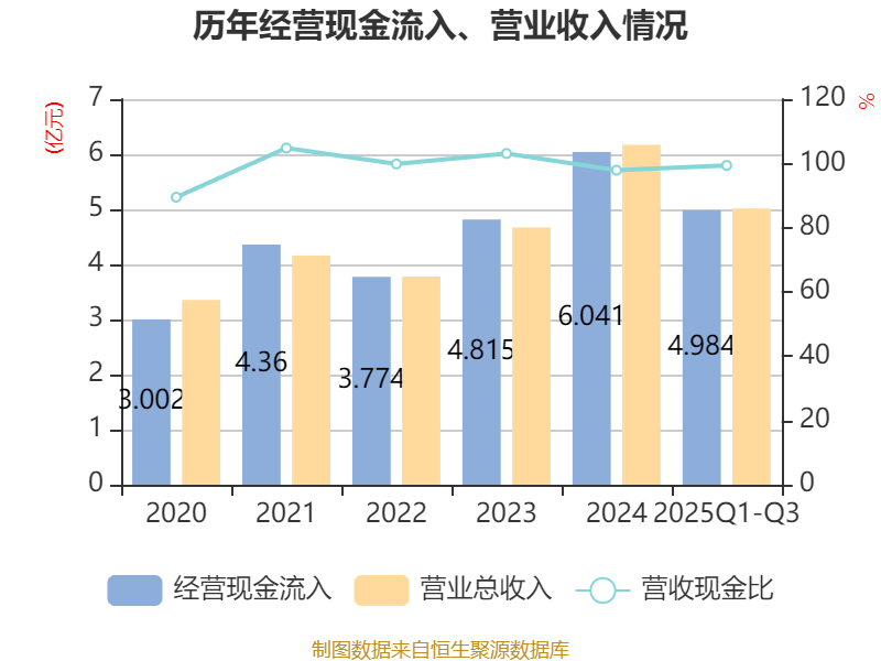 2025年前三季度,公司流动比率为7.29,速动比率为6.49。