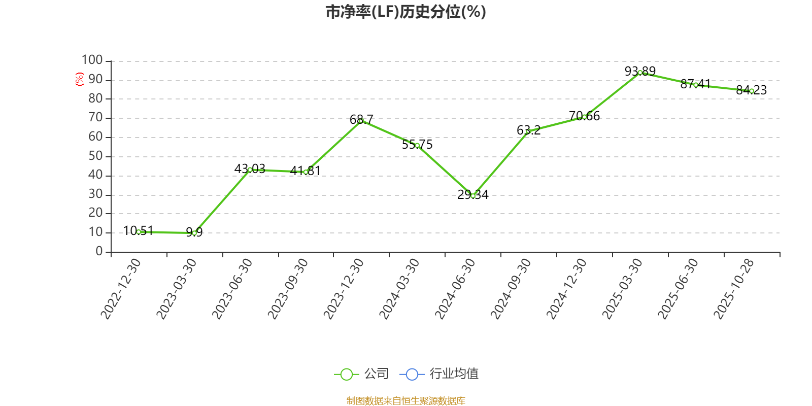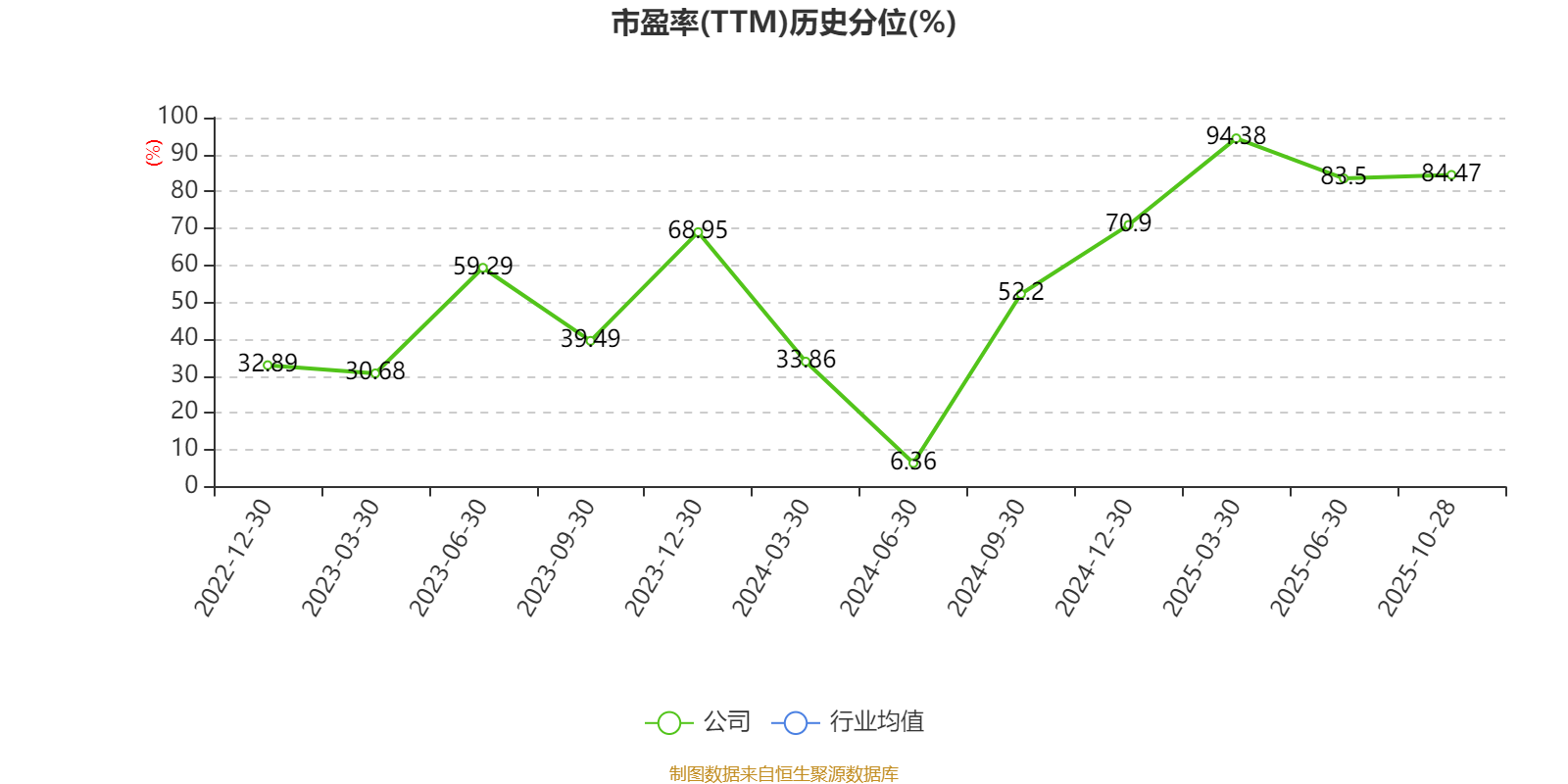 市盈率、市净率为负时,不显示当期分位数,会导致折线图中断。