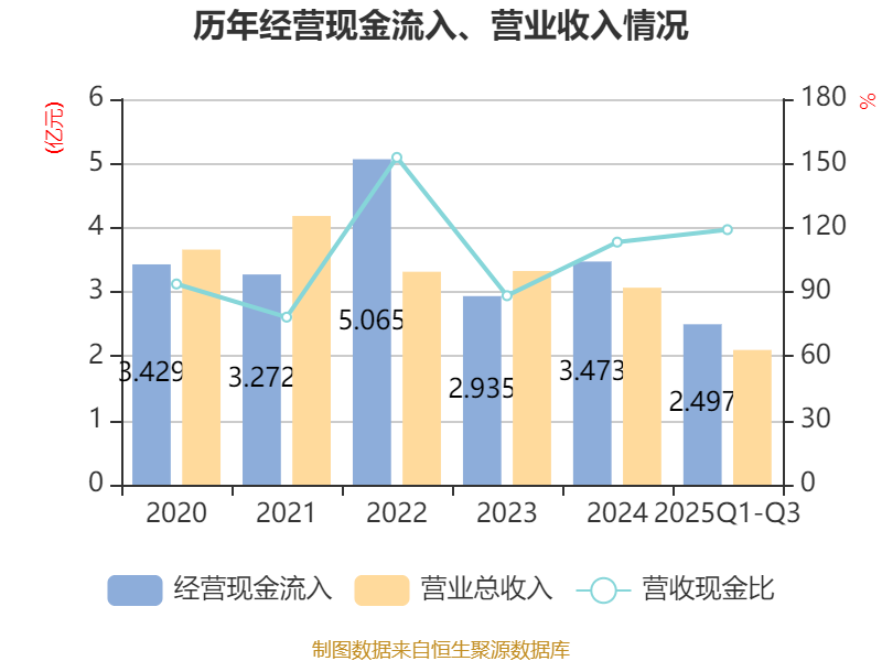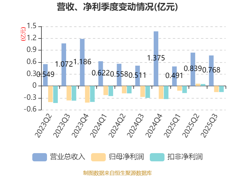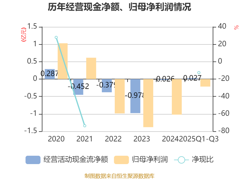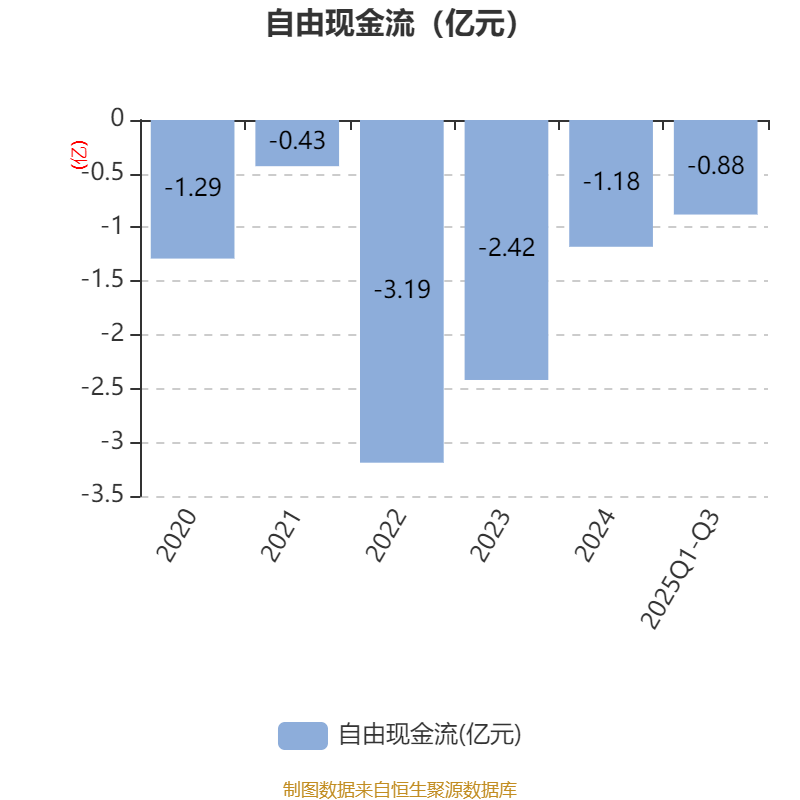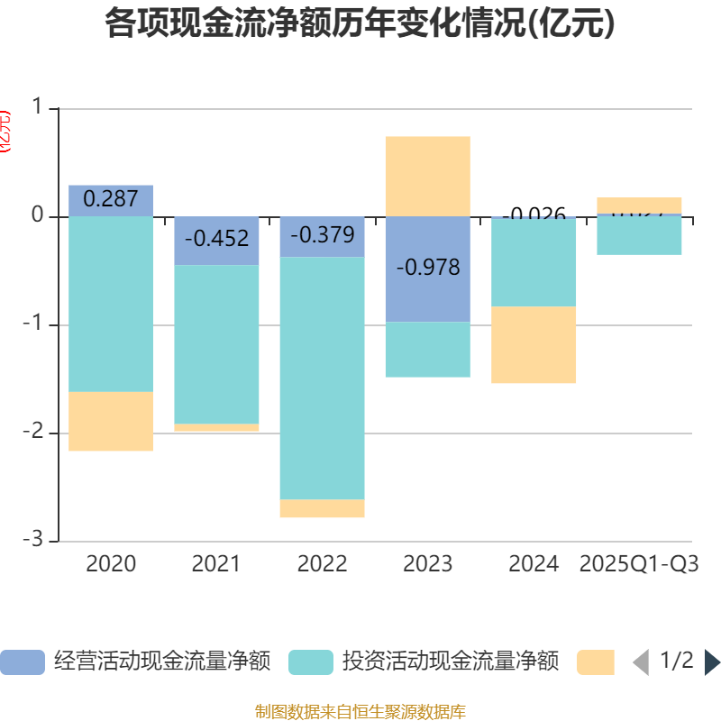2025年前三季度,公司经营活动现金流净额为272.62万元,同比增加4258.68万元;筹资活动现金流净额1482.78万元,同比增加8397.54万元;投资活动现金流净额-3565.86万元,上年同期为-7230.2万元。