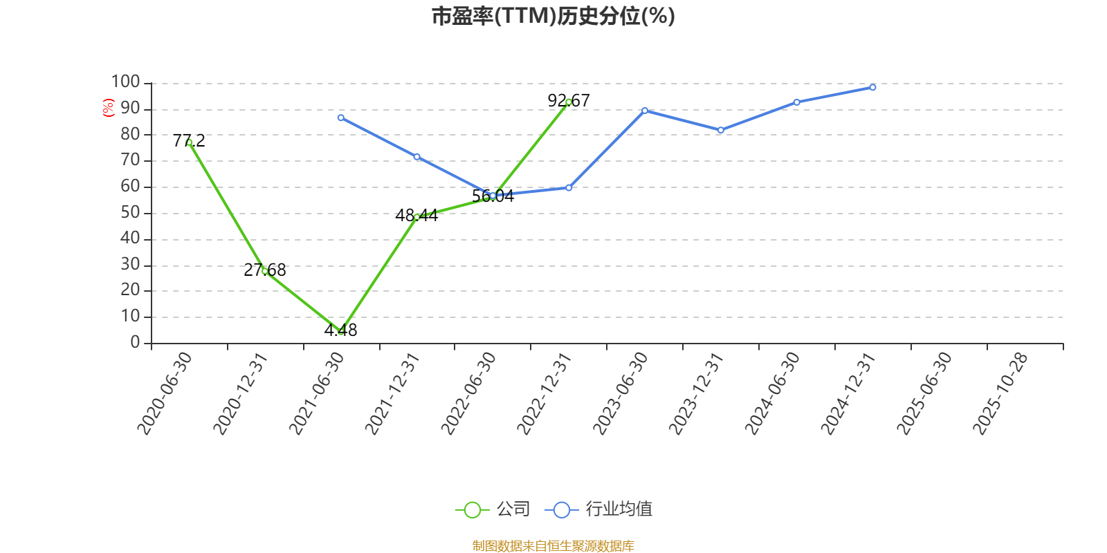 市盈率、市净率为负时,不显示当期分位数,会导致折线图中断。