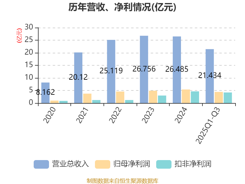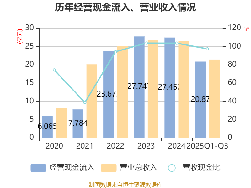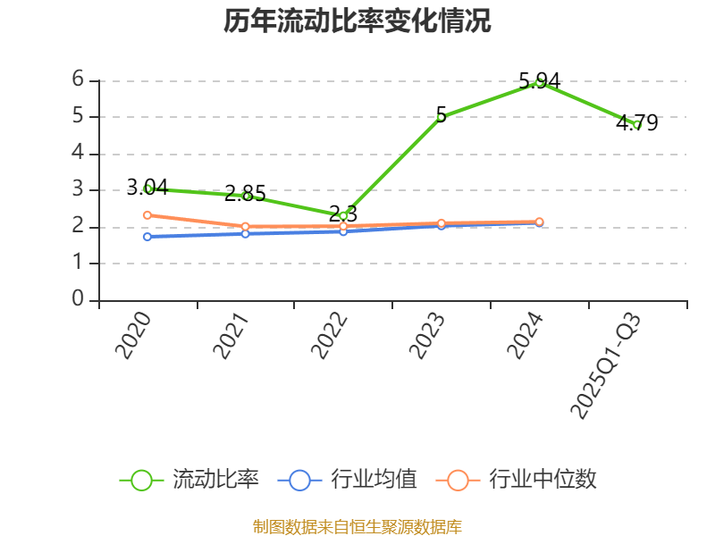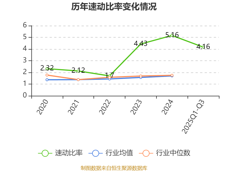 2025年前三季度,公司流动比率为4.79,速动比率为4.16。