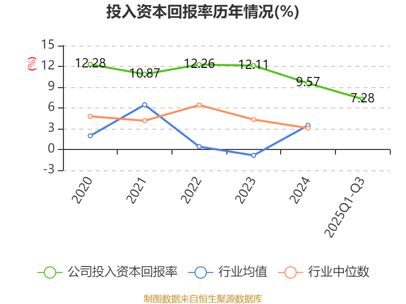 盈利能力方面, 2025年前三季度公司加权平均净资产收益率为7.15%,同比上升0.72个百分点。公司2025年前三季度投入资本回报率为7.28%,较上年同期上升0.61个百分点。