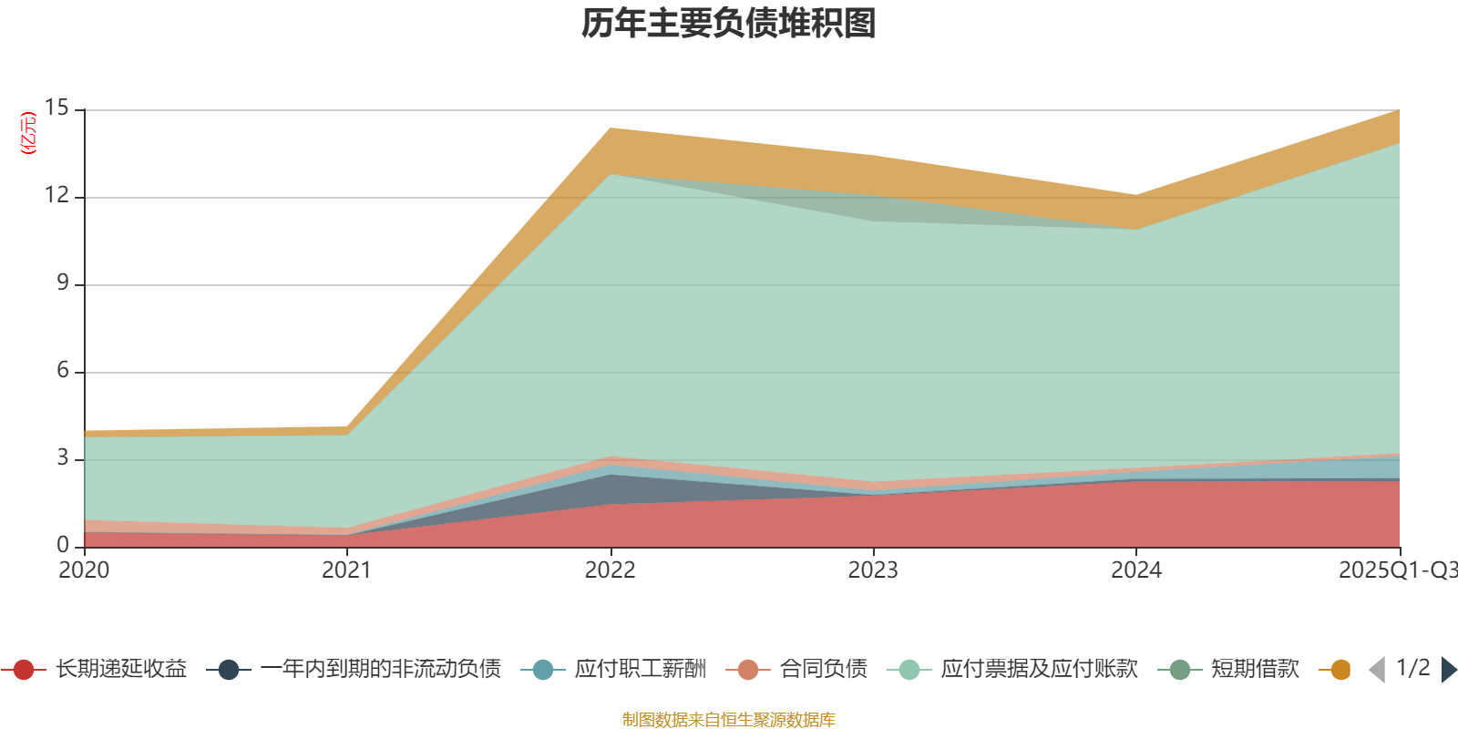 负债重大变化方面,截至2025年三季度末,公司应付票据及应付账款较上年末增加30.12%,占公司总资产比重上升2.24个百分点;应付职工薪酬较上年末增加219%,占公司总资产比重上升0.62个百分点;应交税费较上年末减少42.2%,占公司总资产比重下降0.27个百分点;长期递延收益较上年末增加0.79%,占公司总资产比重下降0.19个百分点。