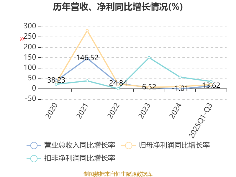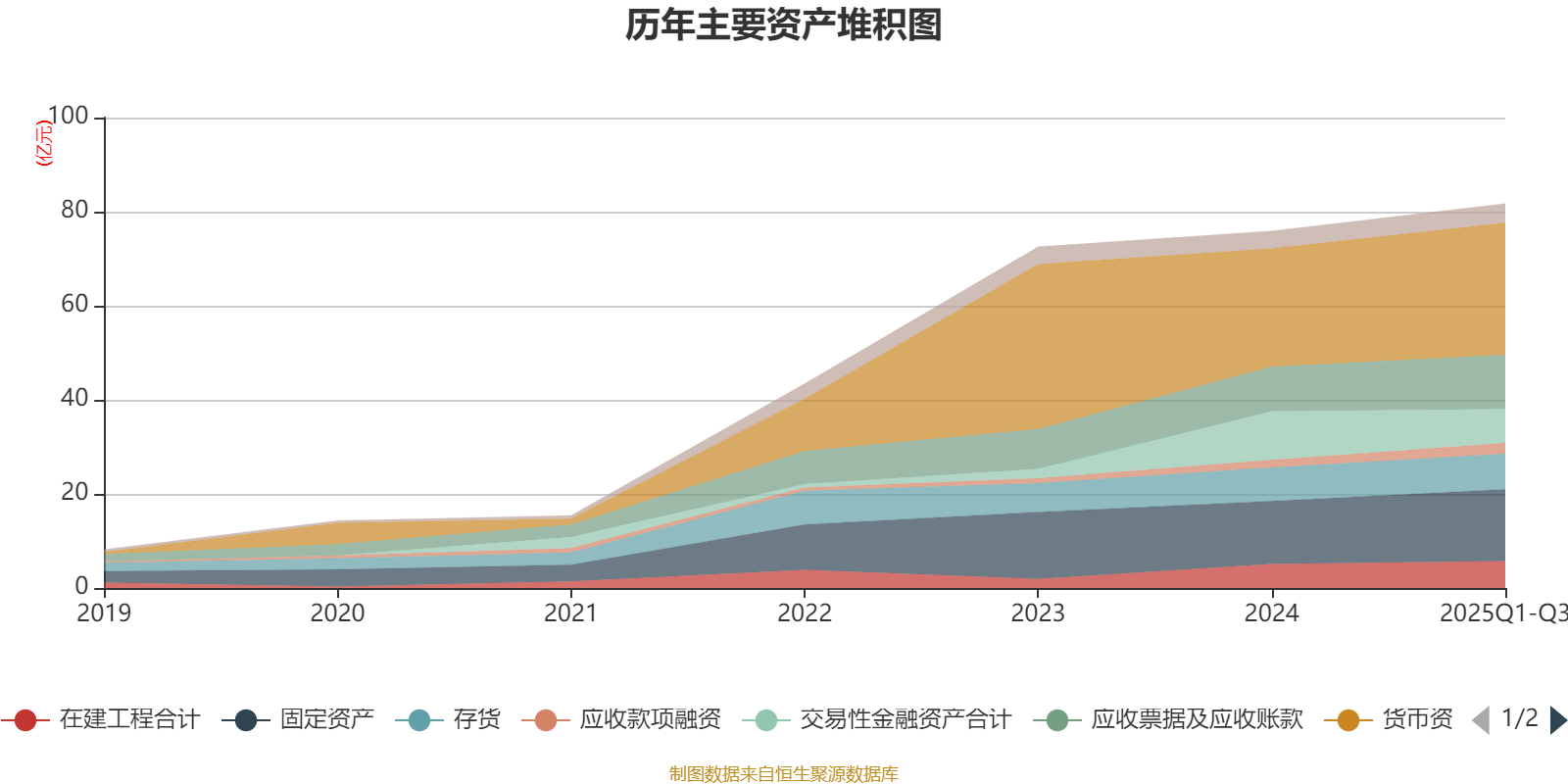 资产重大变化方面,截至2025年三季度末,公司交易性金融资产合计较上年末减少29.89%,占公司总资产比重下降4.74个百分点;应收票据及应收账款较上年末增加21.61%,占公司总资产比重上升1.62个百分点;货币资金较上年末增加11.39%,占公司总资产比重上升1.14个百分点;固定资产较上年末增加13.66%,占公司总资产比重上升0.98个百分点。
