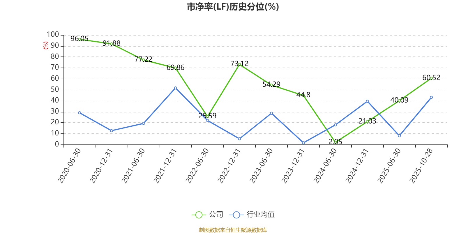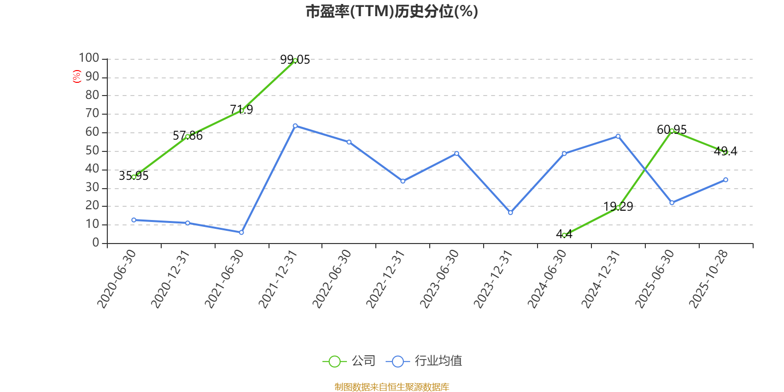 市盈率、市净率为负时,不显示当期分位数,会导致折线图中断。