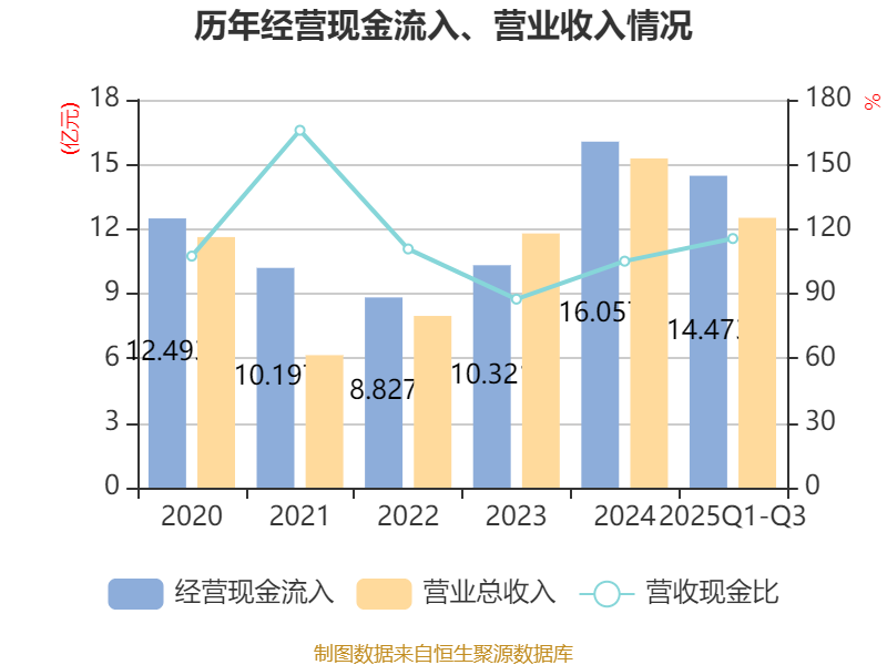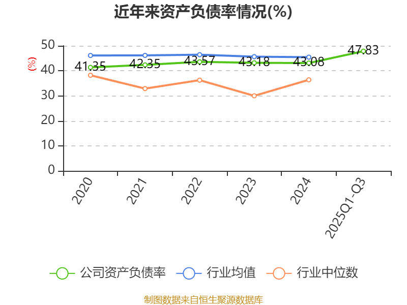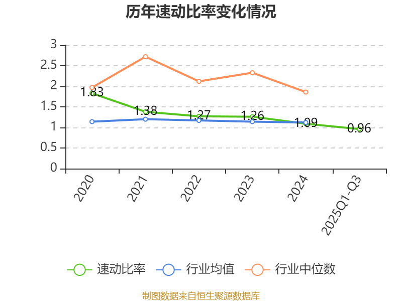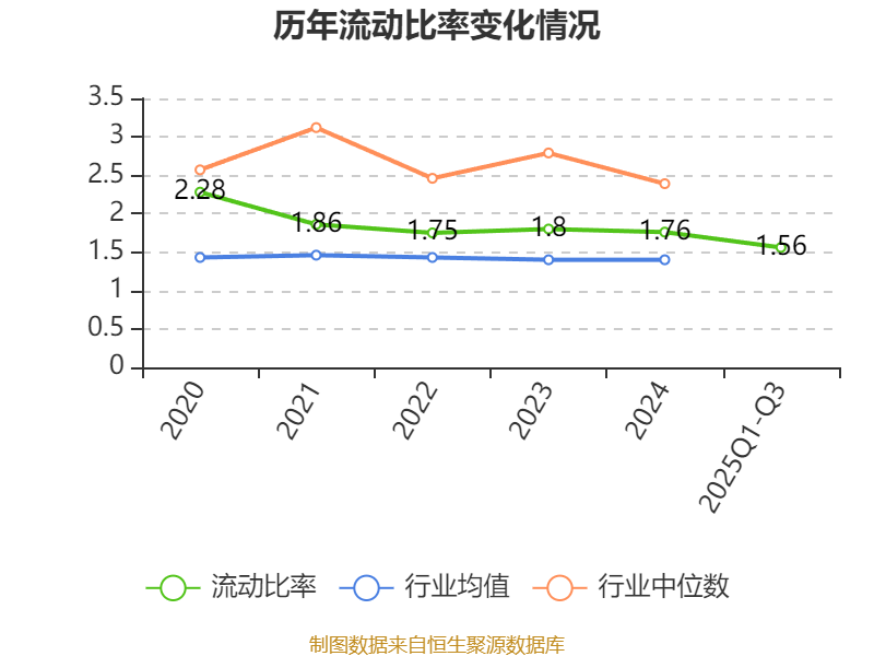 2025年前三季度,公司流动比率为1.56,速动比率为0.96。