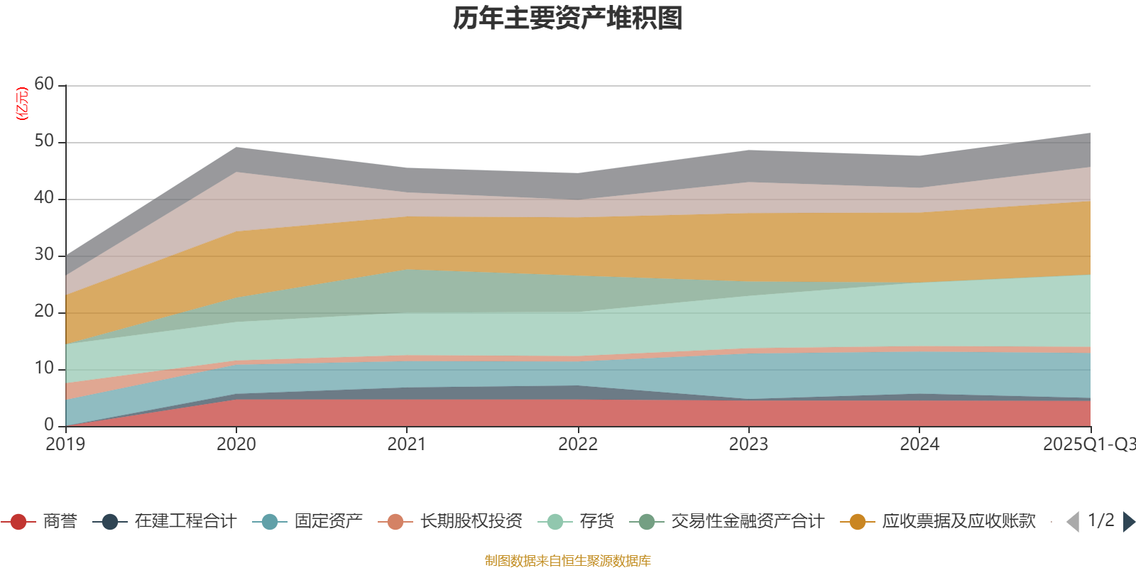 资产重大变化方面,截至2025年三季度末,公司货币资金较上年末增加37.77%,占公司总资产比重上升2.47个百分点;在建工程合计较上年末减少54.66%,占公司总资产比重下降1.48个百分点;存货较上年末增加13.61%,占公司总资产比重上升1.1个百分点;商誉较上年末减少1.82%,占公司总资产比重下降0.9个百分点。