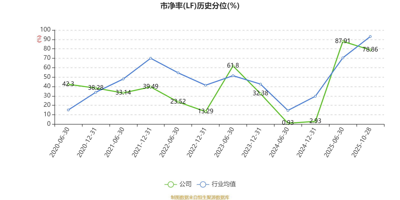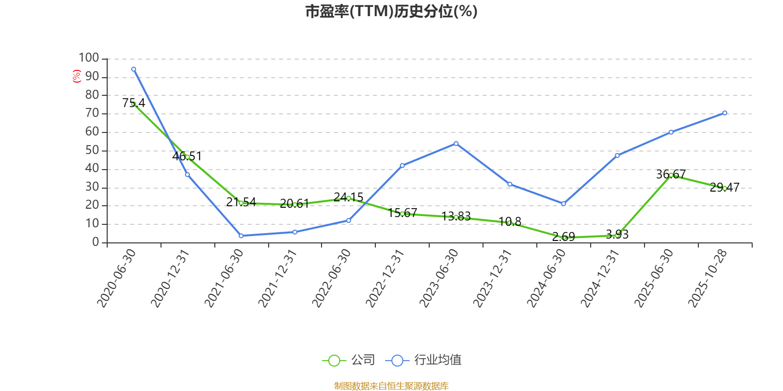 市盈率、市净率为负时,不显示当期分位数,会导致折线图中断。