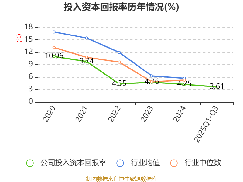 盈利能力方面, 2025年前三季度公司加权平均净资产收益率为3.55%,同比上升1.16个百分点。公司2025年前三季度投入资本回报率为3.61%,较上年同期上升0.81个百分点。