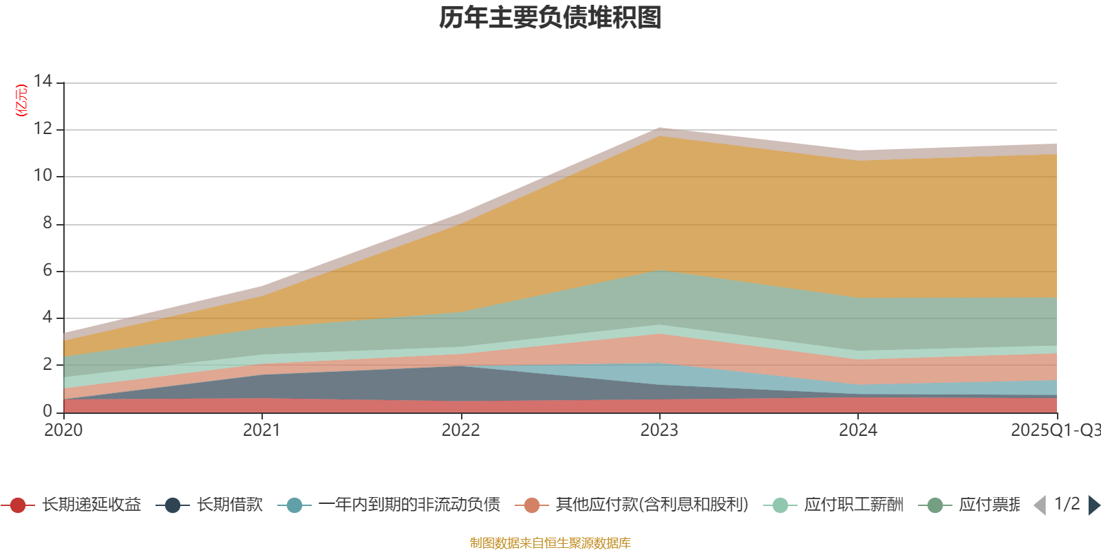 负债重大变化方面,截至2025年三季度末,公司应付票据及应付账款较上年末减少9.1%,占公司总资产比重下降0.82个百分点;一年内到期的非流动负债较上年末增加55.7%,占公司总资产比重上升0.71个百分点;短期借款较上年末增加4.62%,占公司总资产比重上升0.5个百分点;其他应付款(含利息和股利)较上年末增加6.74%,占公司总资产比重上升0.17个百分点。
