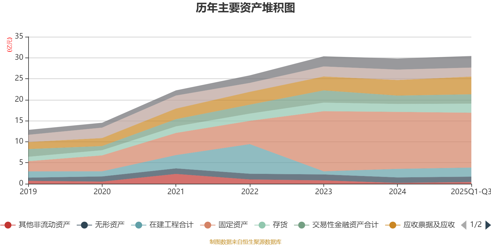 资产重大变化方面,截至2025年三季度末,公司固定资产较上年末减少3.76%,占公司总资产比重下降2.58个百分点;应收票据及应收账款较上年末增加13.63%,占公司总资产比重上升1.41个百分点;货币资金较上年末减少13.29%,占公司总资产比重下降1.25个百分点;存货较上年末增加14.71%,占公司总资产比重上升0.79个百分点。