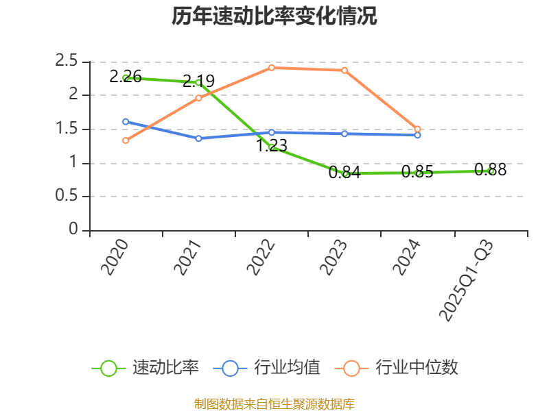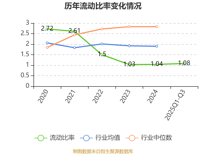 2025年前三季度,公司流动比率为1.08,速动比率为0.88。
