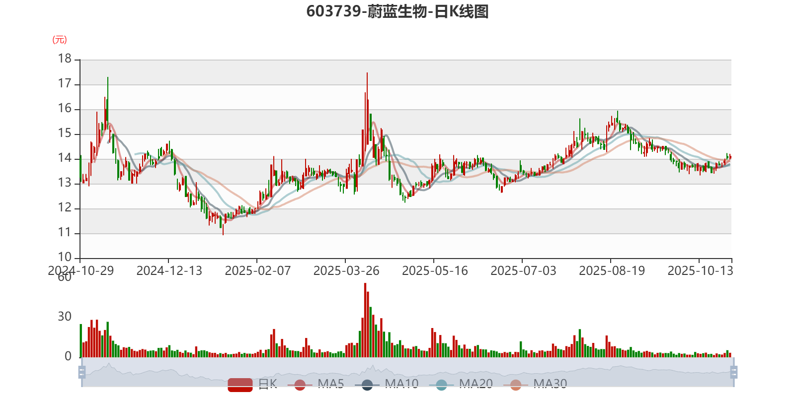以10月28日收盘价计算,蔚蓝生物目前市盈率(TTM)约为42.69倍,市净率(LF)约2.01倍,市销率(TTM)约2.56倍。