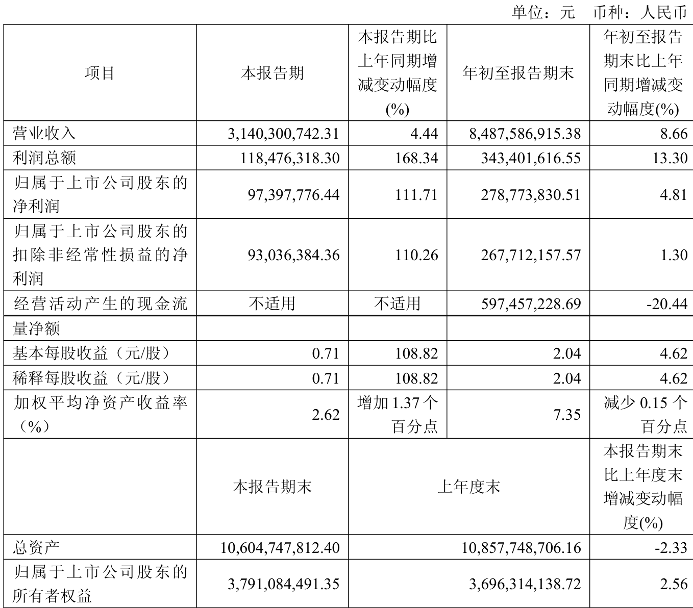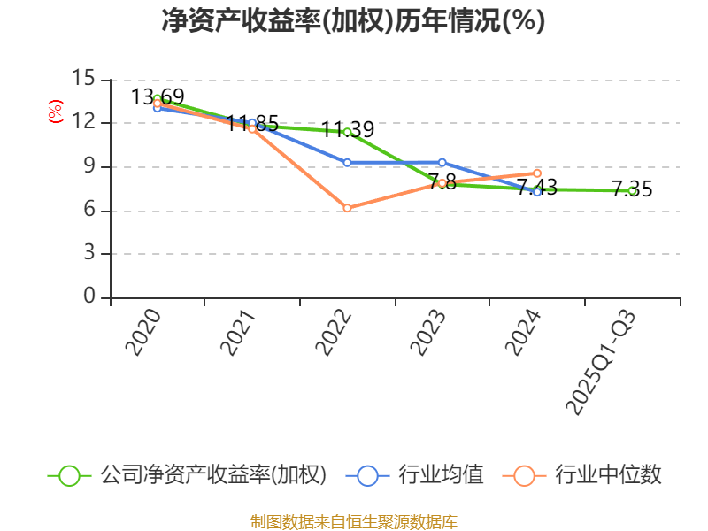 盈利能力方面, 2025年前三季度公司加权平均净资产收益率为7.35%,同比下降0.15个百分点。公司2025年前三季度投入资本回报率为5.21%,较上年同期上升0.32个百分点。