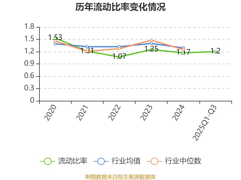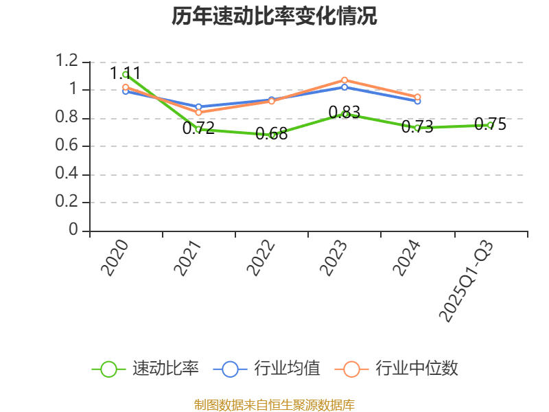 2025年前三季度,公司流动比率为1.2,速动比率为0.75。