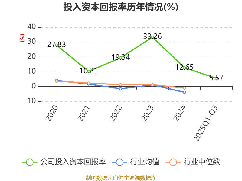 盈利能力方面, 2025年前三季度公司加权平均净资产收益率为6.85%,同比下降7.71个百分点。公司2025年前三季度投入资本回报率为5.57%,较上年同期下降4.85个百分点。