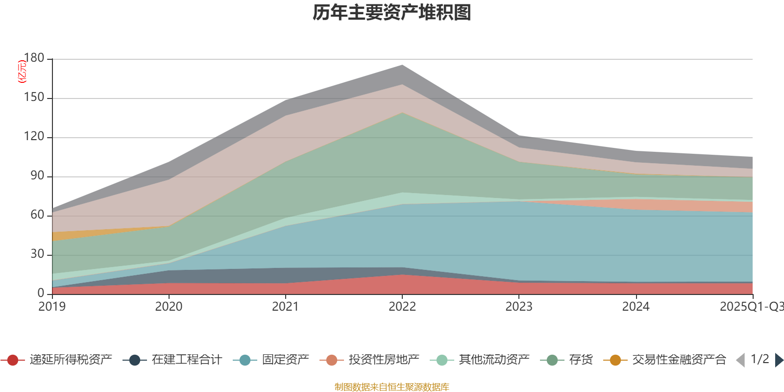 资产重大变化方面,截至2025年三季度末,公司货币资金较上年末减少26.24%,占公司总资产比重下降1.84个百分点;存货较上年末增加1.36%,占公司总资产比重上升0.91个百分点;应收票据及应收账款较上年末增加110.33%,占公司总资产比重上升0.57个百分点;交易性金融资产合计较上年末减少100%,占公司总资产比重下降0.46个百分点。