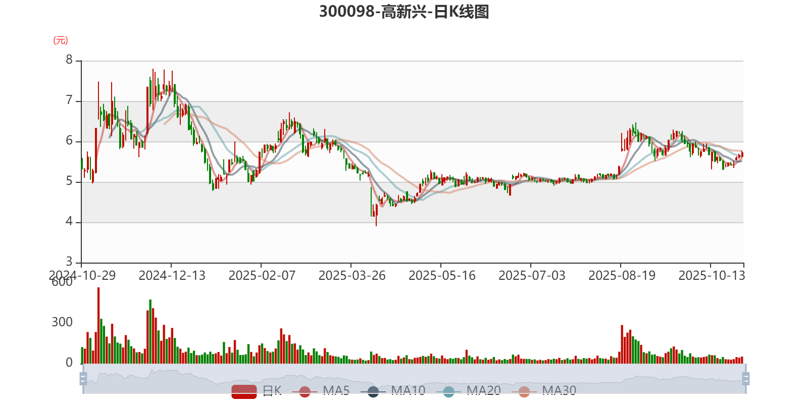 以10月28日收盘价计算,高新兴目前市盈率(TTM)约为-78.11倍,市净率(LF)约3.66倍,市销率(TTM)约5.56倍。