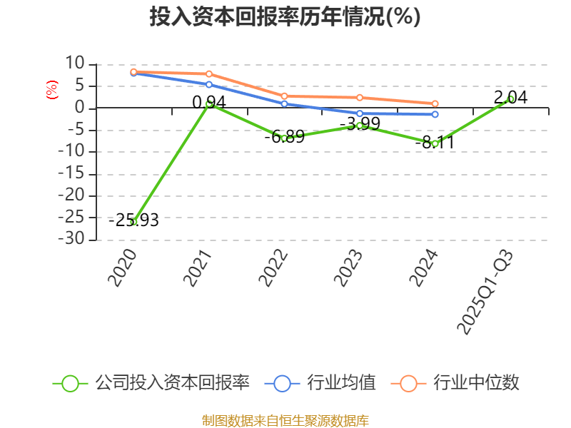 盈利能力方面, 2025年前三季度公司加权平均净资产收益率为2.37%,同比上升3.99个百分点。公司2025年前三季度投入资本回报率为2.04%,较上年同期上升4.3个百分点。