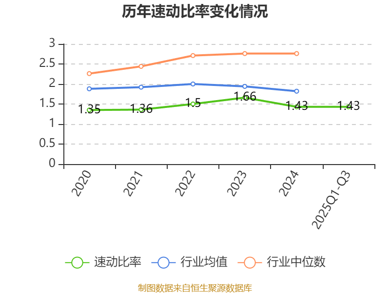 2025年前三季度,公司流动比率为1.72,速动比率为1.43。