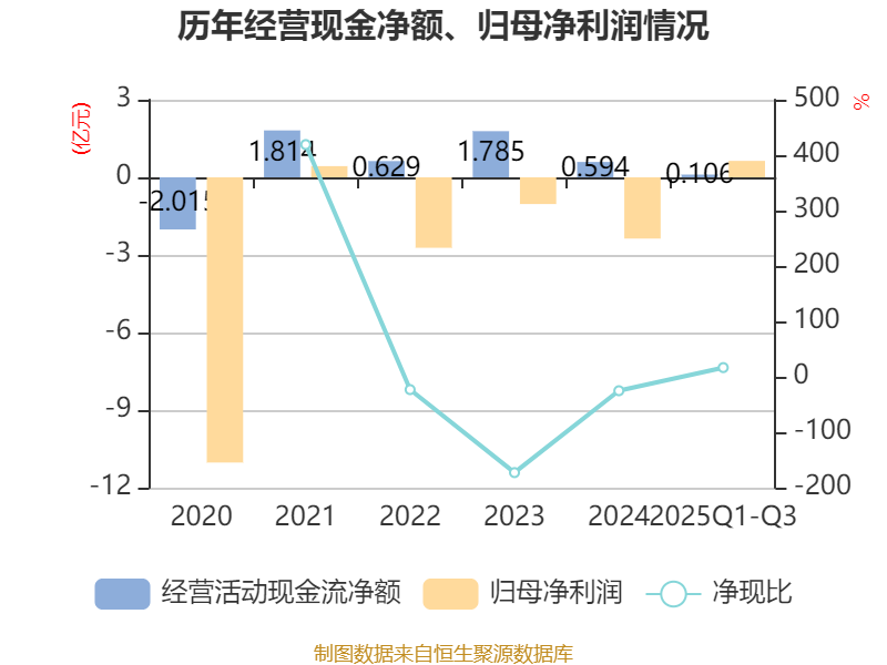 2025年前三季度,公司经营活动现金流净额为1058.18万元,同比增加8296.55万元;筹资活动现金流净额504.12万元,同比增加3211.34万元;投资活动现金流净额-7799.71万元,上年同期为-1.82亿元。