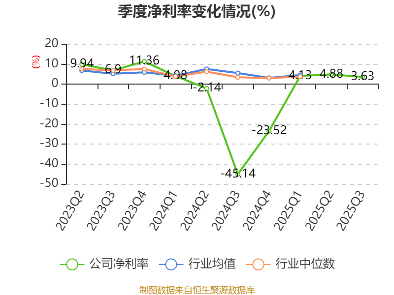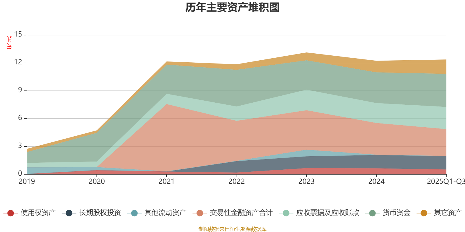 资产重大变化方面,截至2025年三季度末,公司交易性金融资产合计较上年末减少15.54%,占公司总资产比重下降4.61个百分点;固定资产较上年末增加162.25%,占公司总资产比重上升1.95个百分点;应收票据及应收账款较上年末增加11.68%,占公司总资产比重上升1.84个百分点;货币资金较上年末增加7.56%,占公司总资产比重上升1.74个百分点。