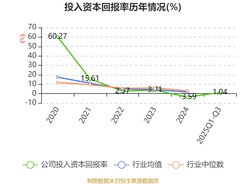 盈利能力方面, 2025年前三季度公司加权平均净资产收益率为1.14%,同比上升3.74个百分点。公司2025年前三季度投入资本回报率为1.04%,较上年同期上升2.47个百分点。